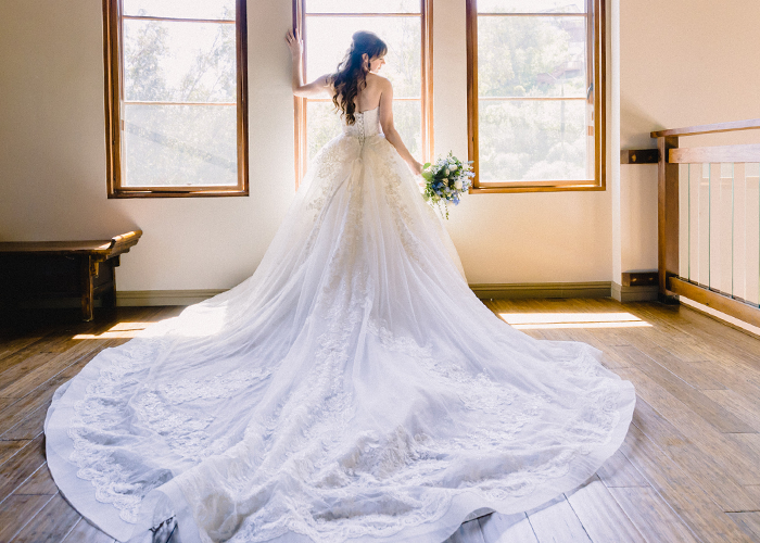 A-Line Cathedral Train Lace Tulle Wedding Dress CW2996