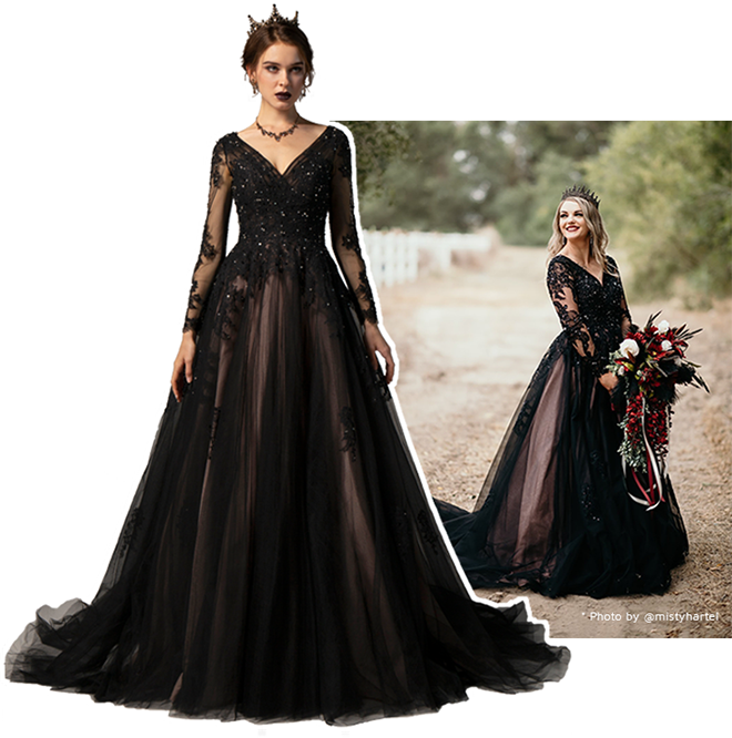 A-Line Sweep-Brush Train Tulle Gothic Wedding Dress LD5830