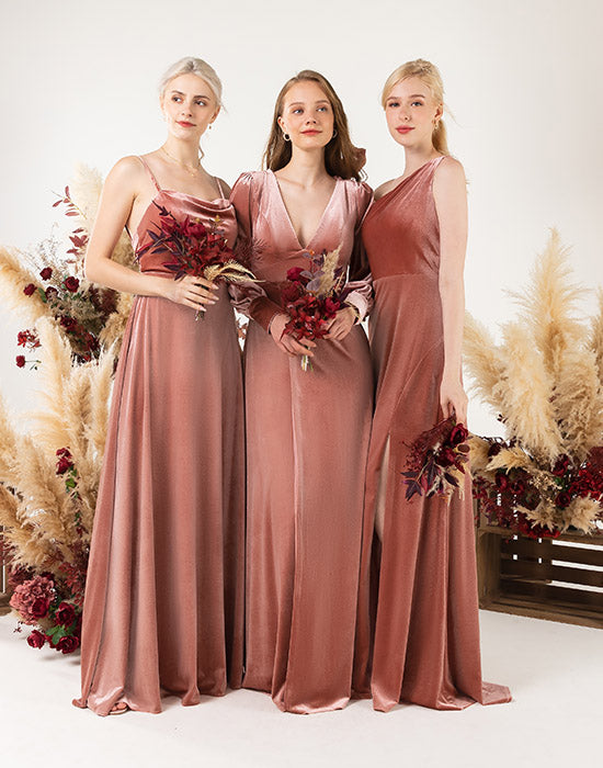 Sheath Sweep-Brush Train Velvet Bridesmaid Dress Formal Dresses CB0537