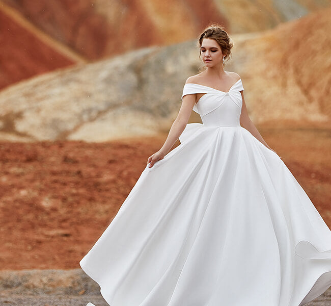 Simple, clean-lined wedding dresses for the modern bride who loves understated elegance.