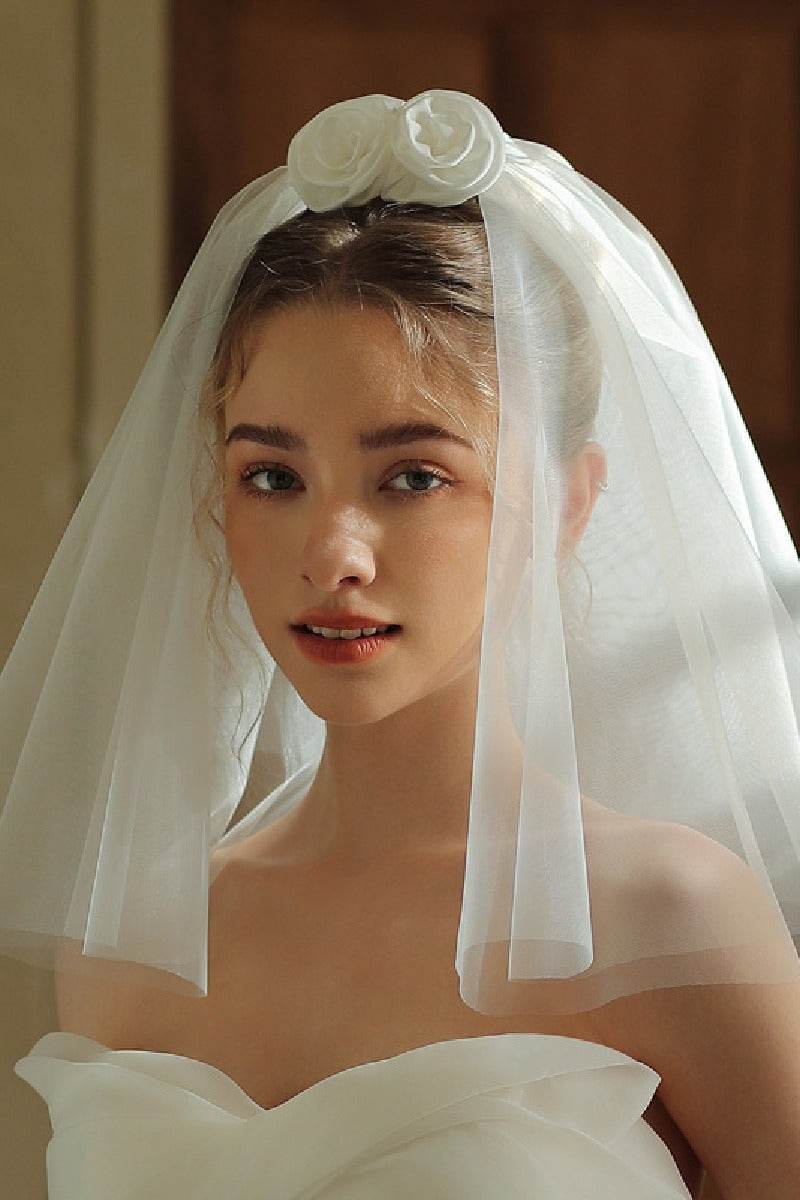Two-tier Cut Edge Tulle Shoulder Veils with Bow CV0382