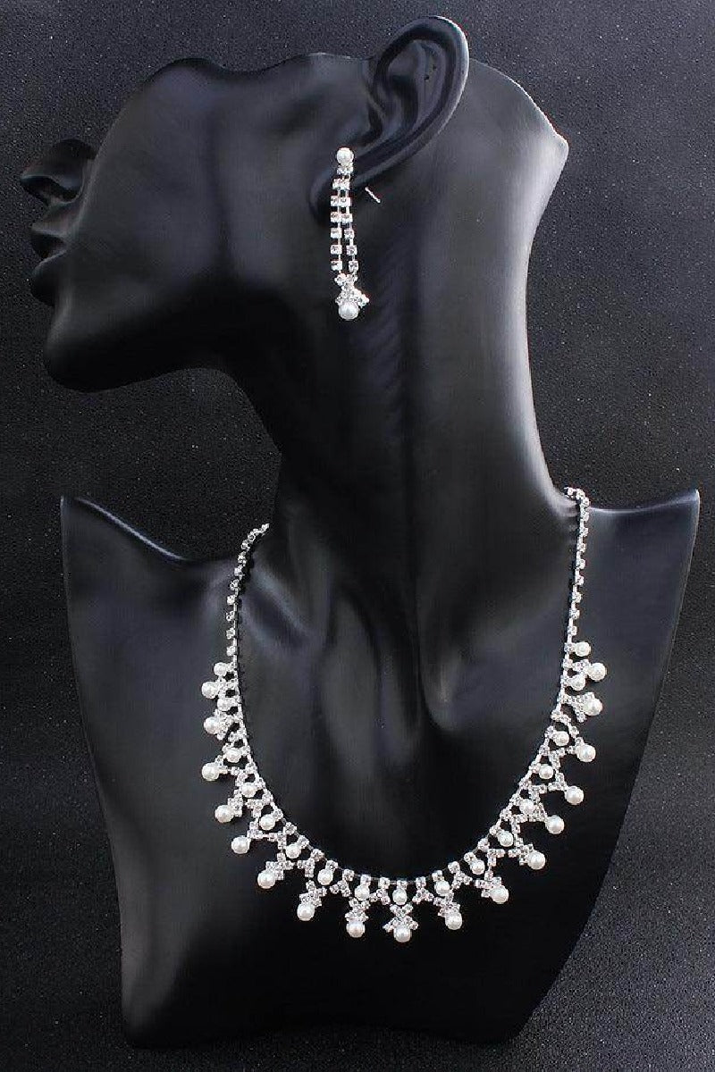 Jewelry Pearl Rhinestone Necklace Earrings 2-Piece Set 527668596787