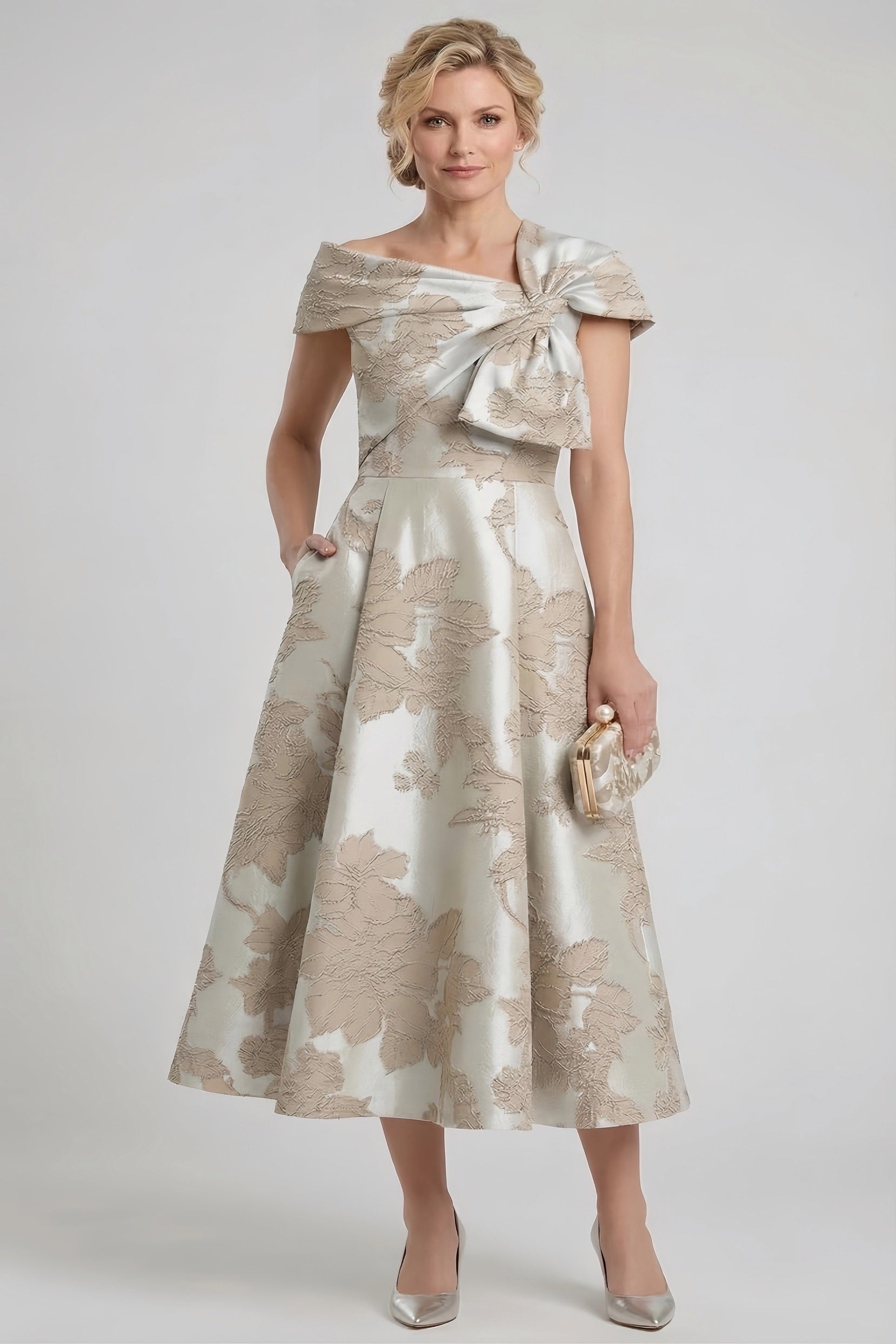 A-Line Tea-Length Jacquard Mother of the Bride Dress CM0424