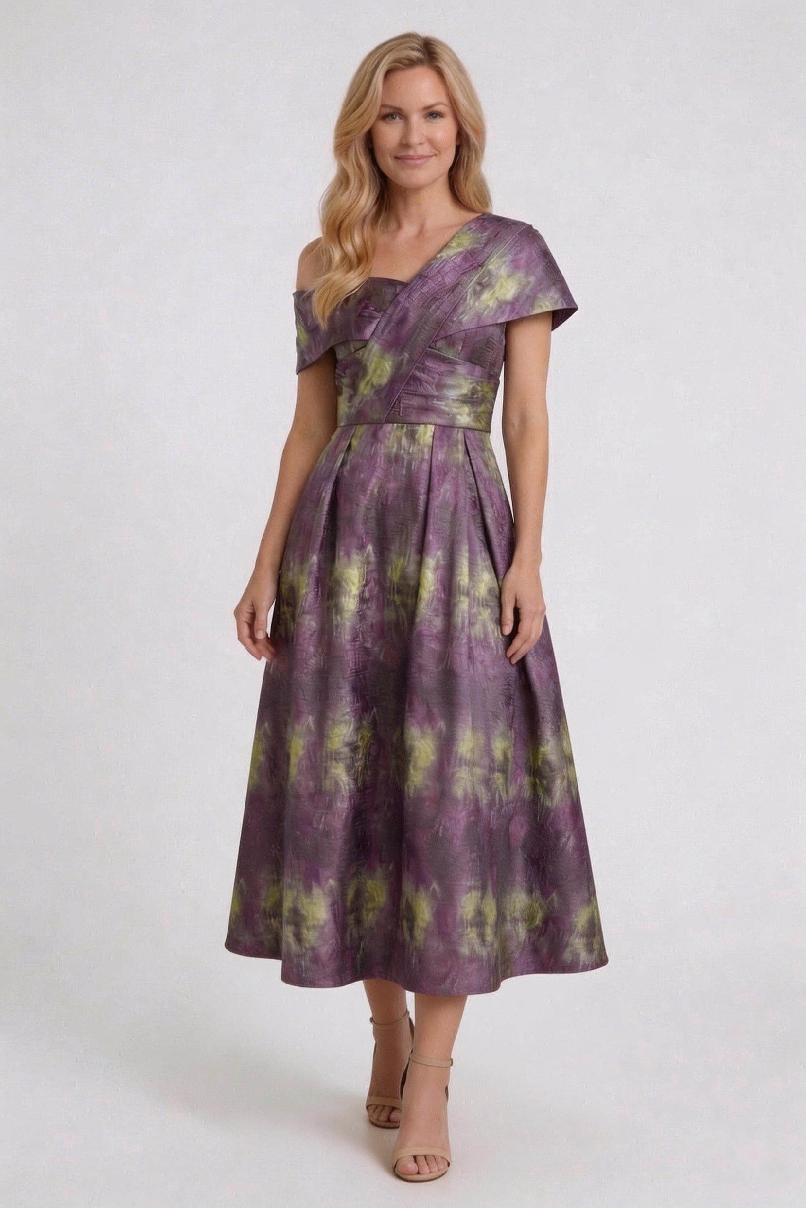 A-Line Tea-Length Jacquard Mother of the Bride Dress CM0429