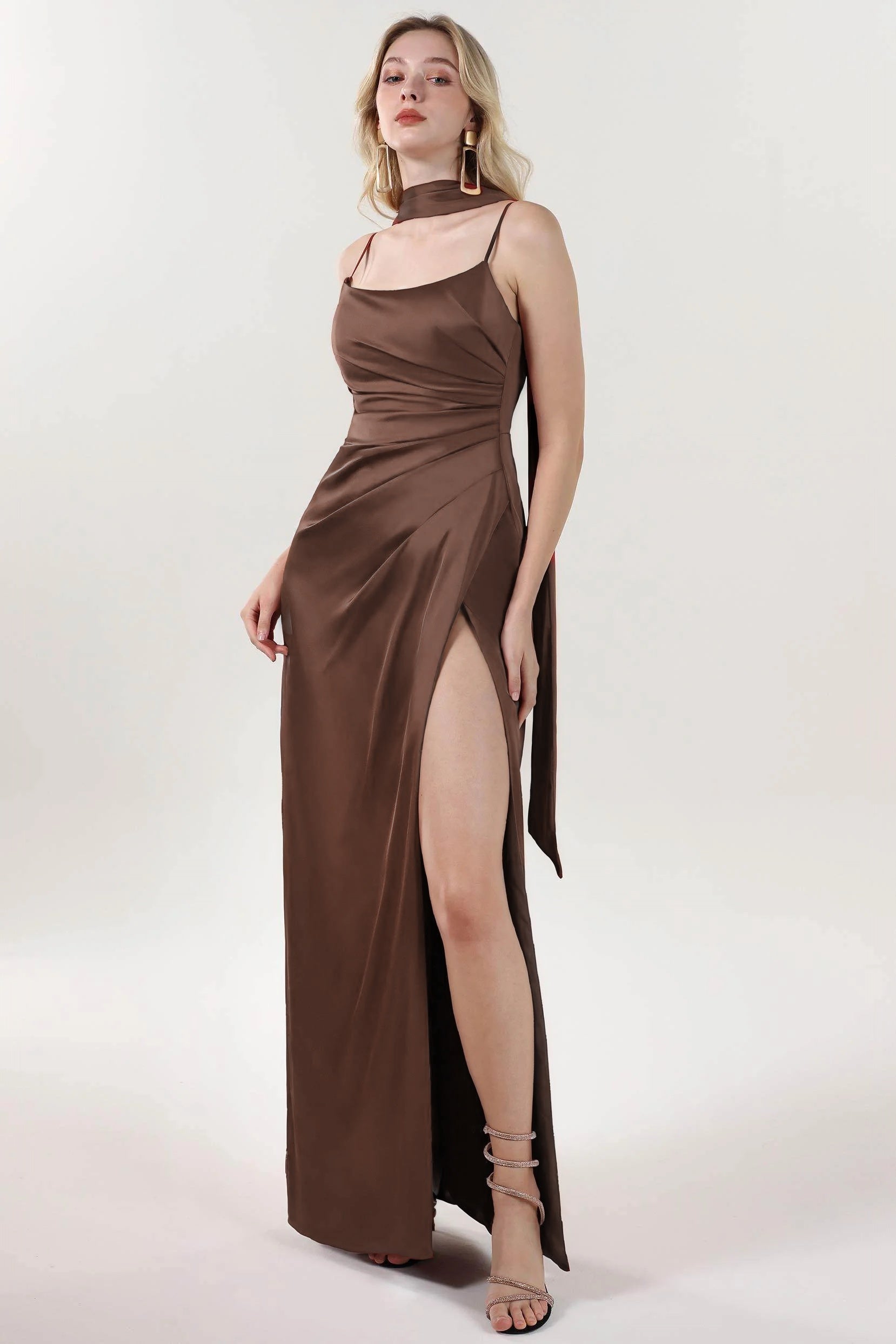 Sheath-Column Maxi Luxe Satin Formal Dress CS0599