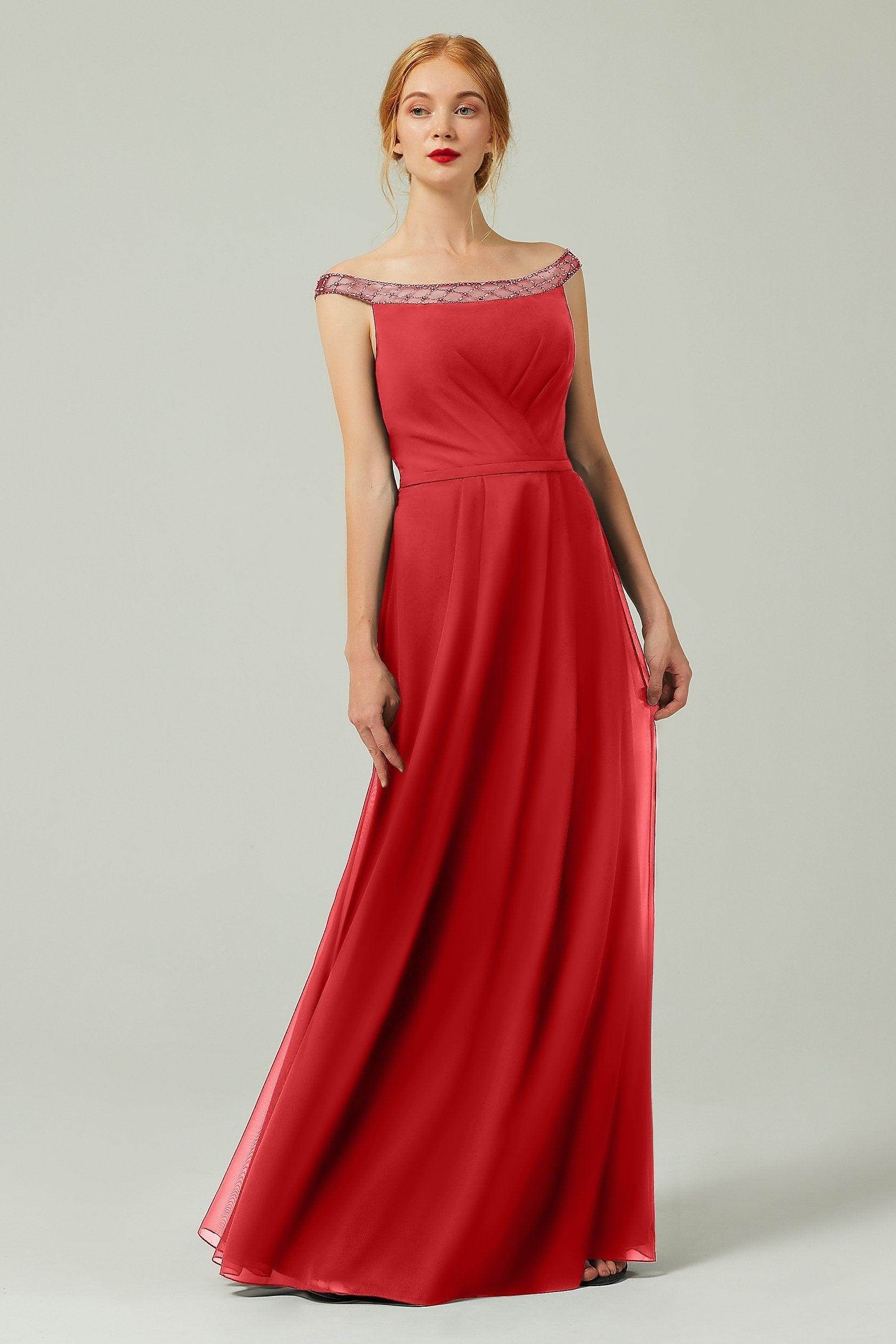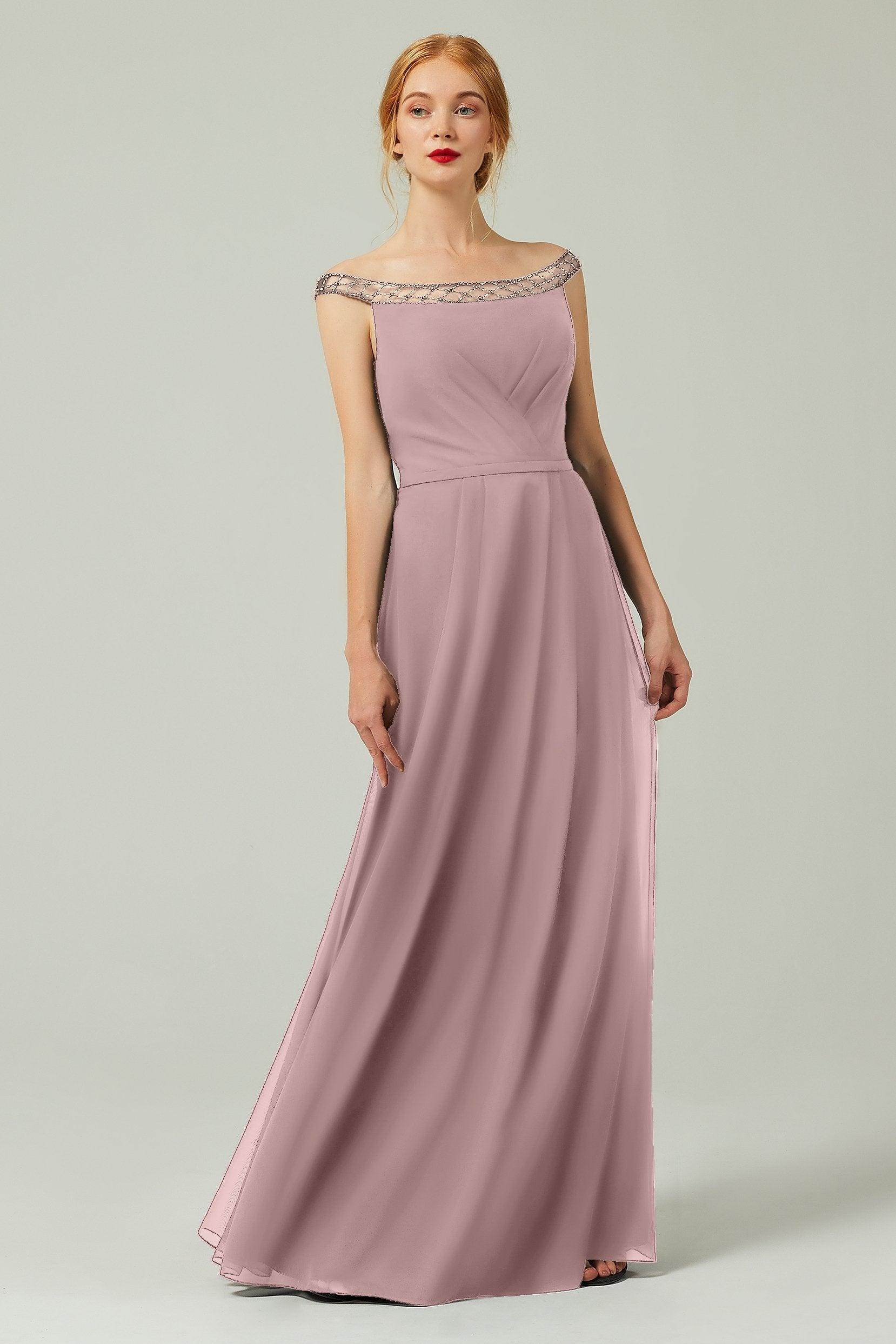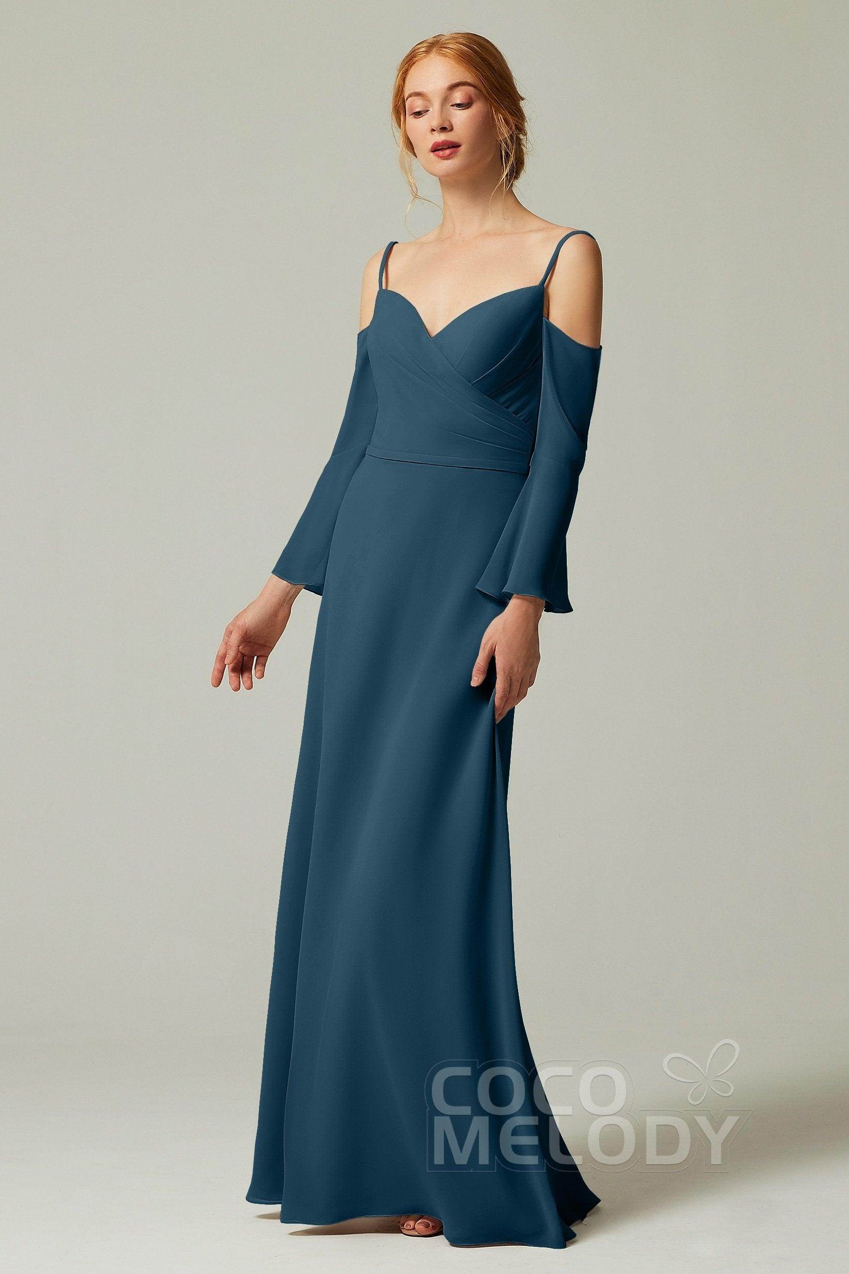 Sheath-Column Floor Length Chiffon Bridesmaid Dress Formal Dresses CB0337