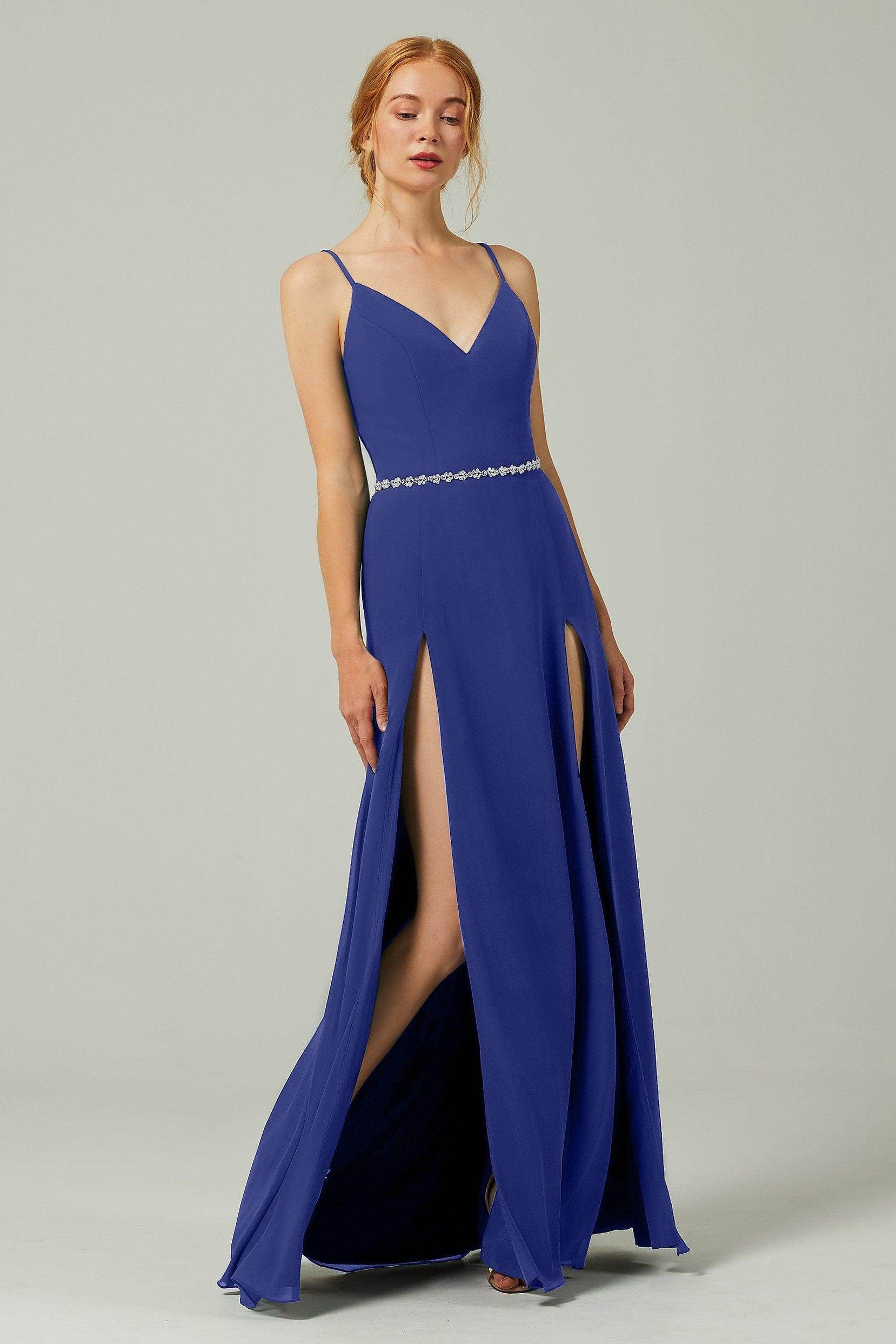 Back Details: Zipper Embellishment: Split Fabrics: Chiffon Length: Floor Length Neckline: V-Neck Silhouette Style: A-Line Sleeve Length: Sleeveless Waist Style:...