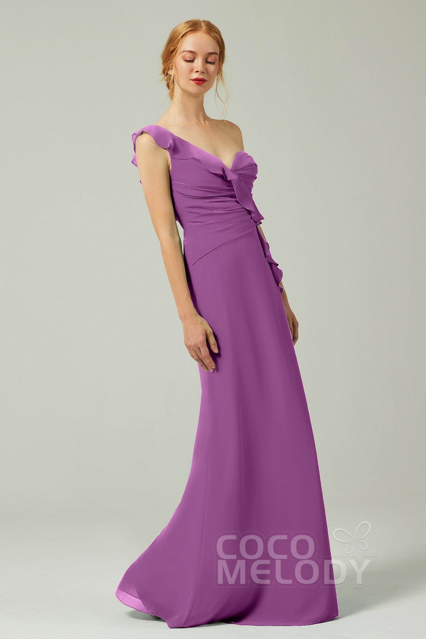 Sheath Floor Length Chiffon Bridesmaid Dress COAF1500A
