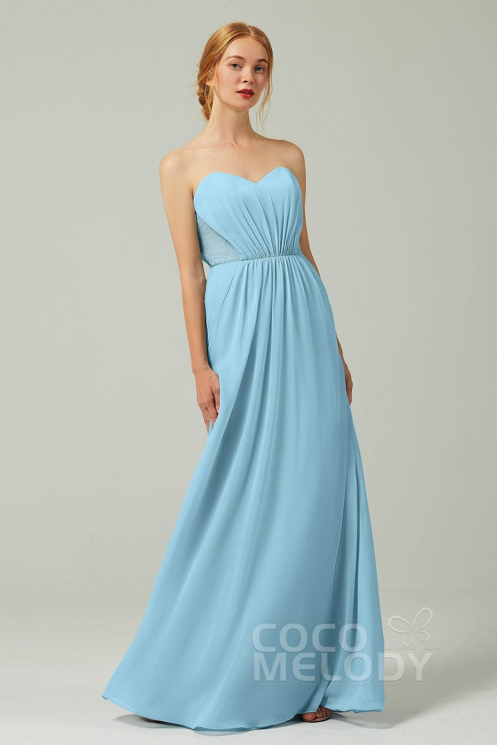 We hold bridesmaid dresses in light blue, navy blue, ocean blue and a couple more, all brilliant in styles and details. To emphasize, Cocomelody spares no effort in supporting the dream of our customers. For this reason, we pay extra attention to the quality of the fabric. In fact, you'll find out in amazement how comfortable it is to dress up in our blue lace bridesmaid dress.