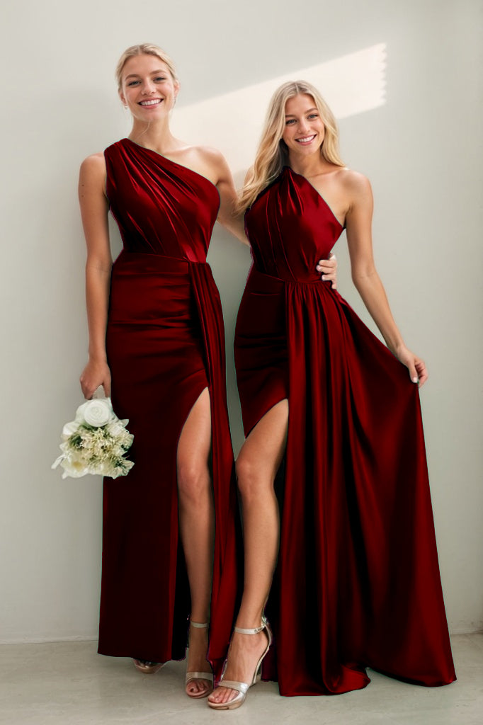 One Shoulder Satin Sheath Bridesmaid Dress with Split CB0808