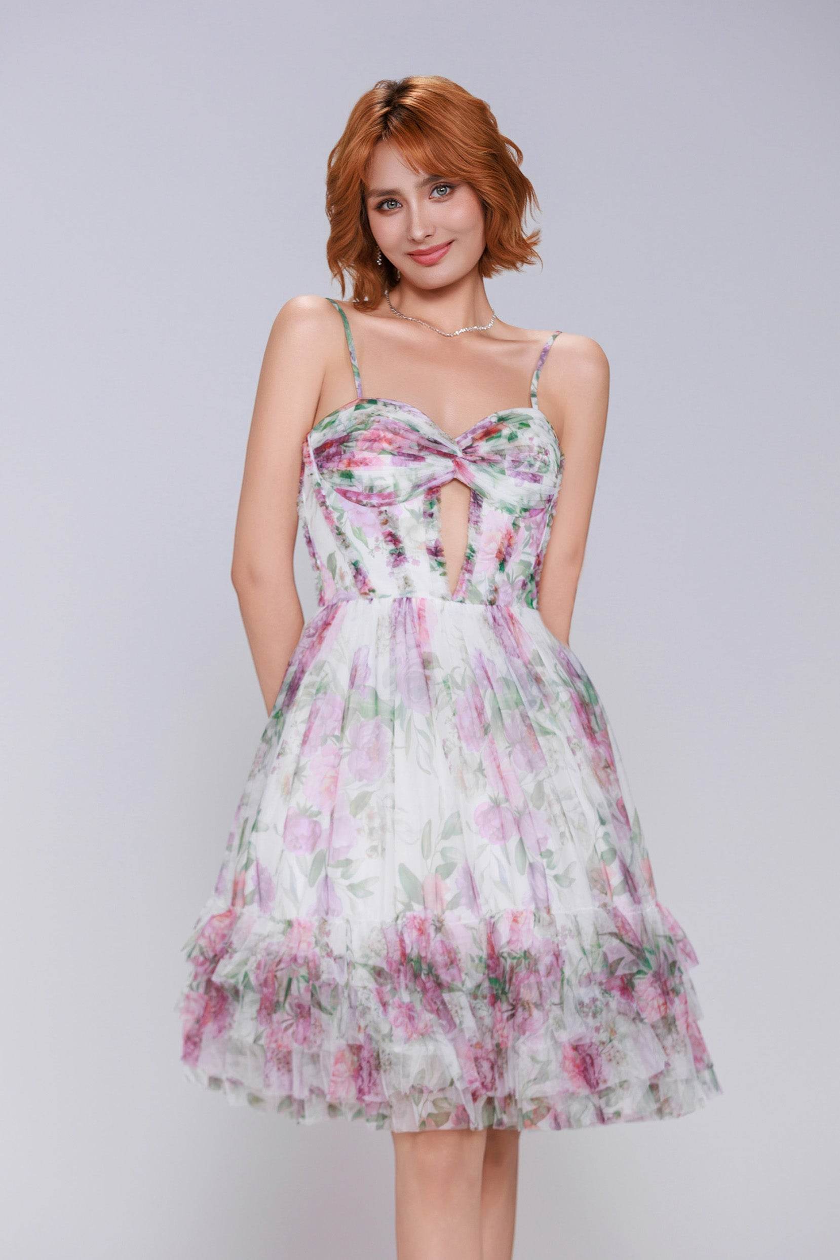 A-Line Mini Printed Gauze Homecoming Dress CS0986