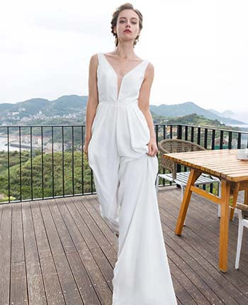 Style Name: HALEIGH Customization: Yes Color Category: Ivory Embellishments: Pleating, Split Neckline Style: Sweetheart Waist: Natural Sleeve: Sleeveless Back Detail:...