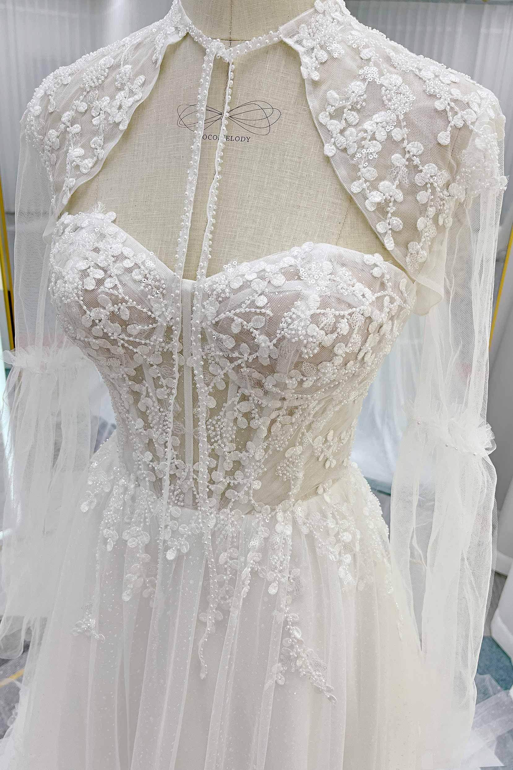 A-Line Court Train Lace Tulle Wedding Dress CW3263