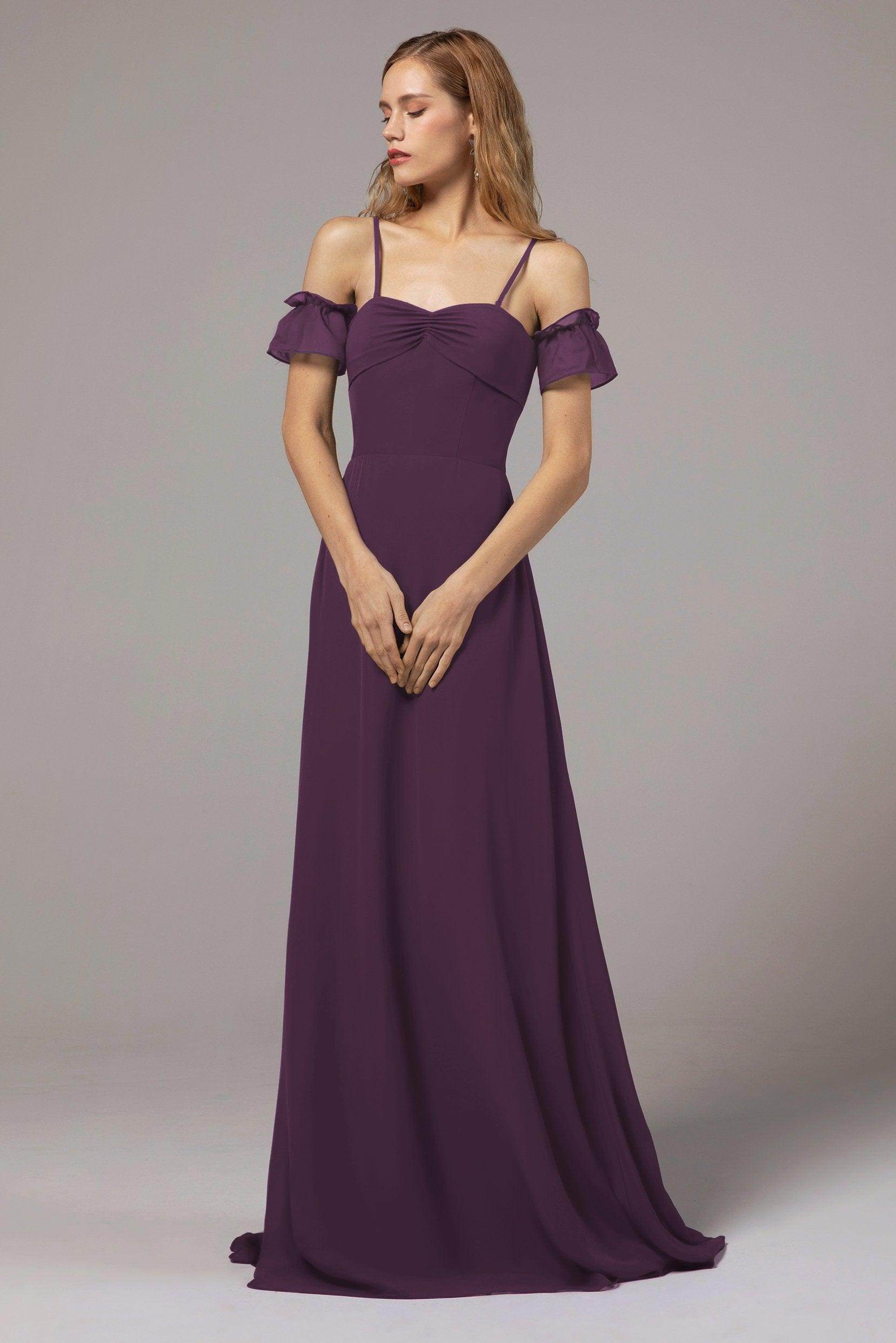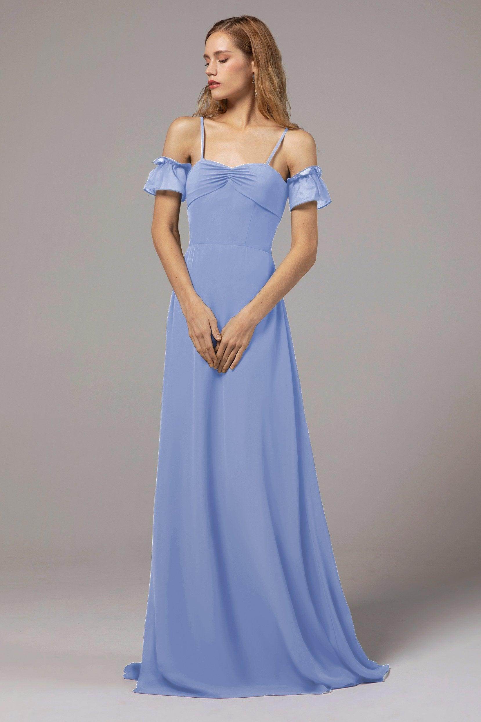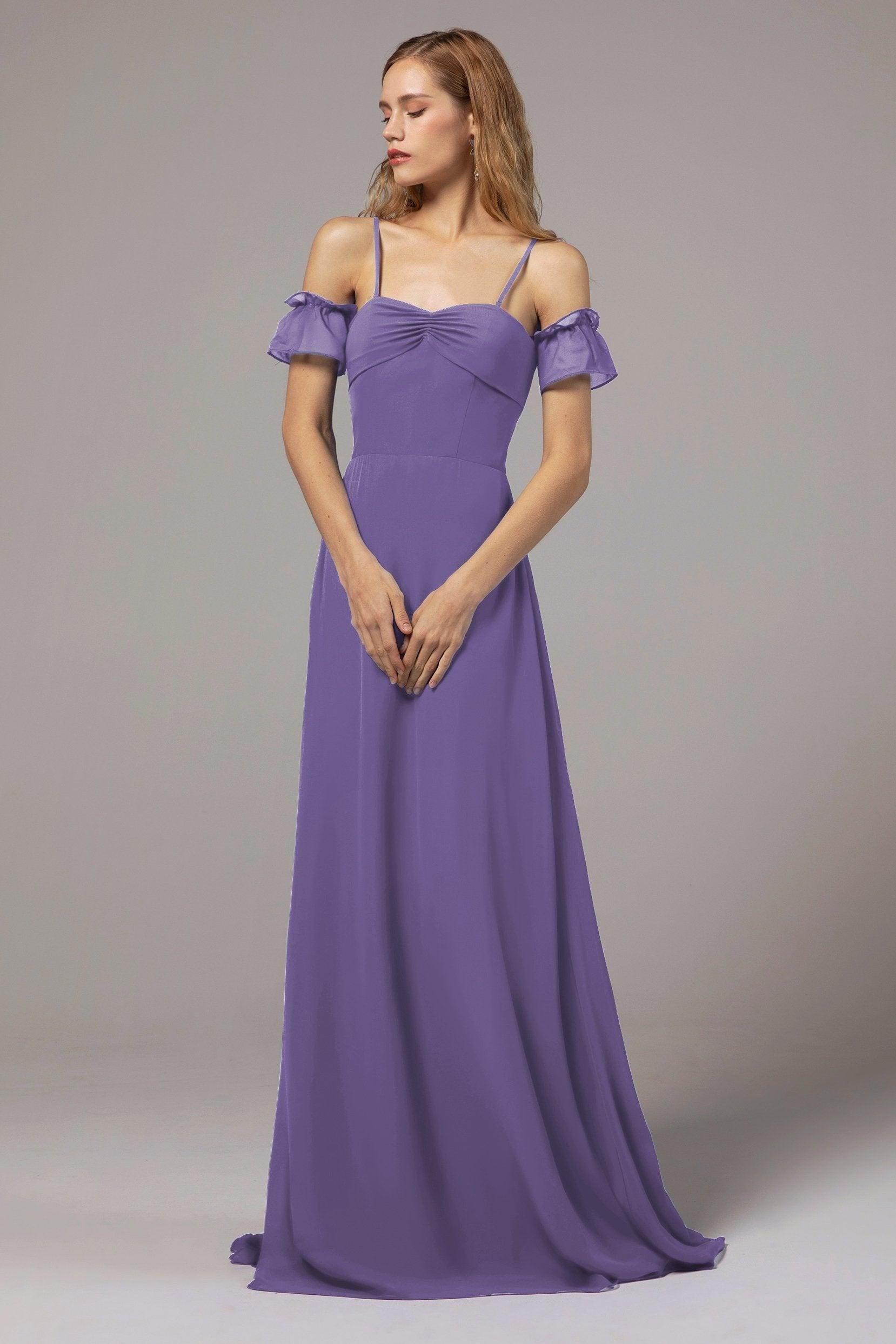 This bridesmaid dress blends elegance and refinement. The back zipper ensures easy wear, while flowing chiffon and the A-line skirt exude grace. Delicate straps and sleeveless design highlight the shoulders and arms. A natural waistline and pleating add sophisticated detail, making it perfect for any formal event.