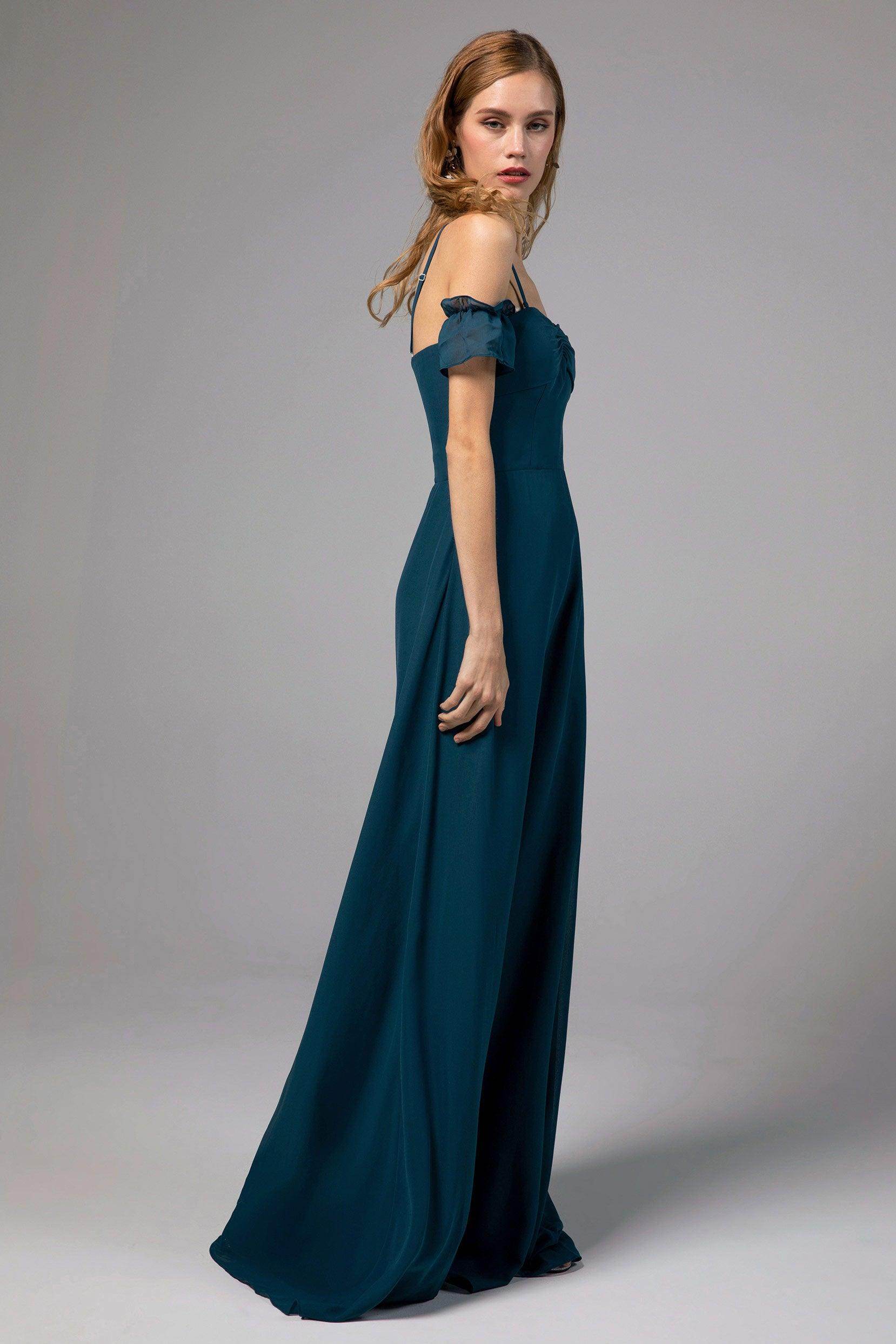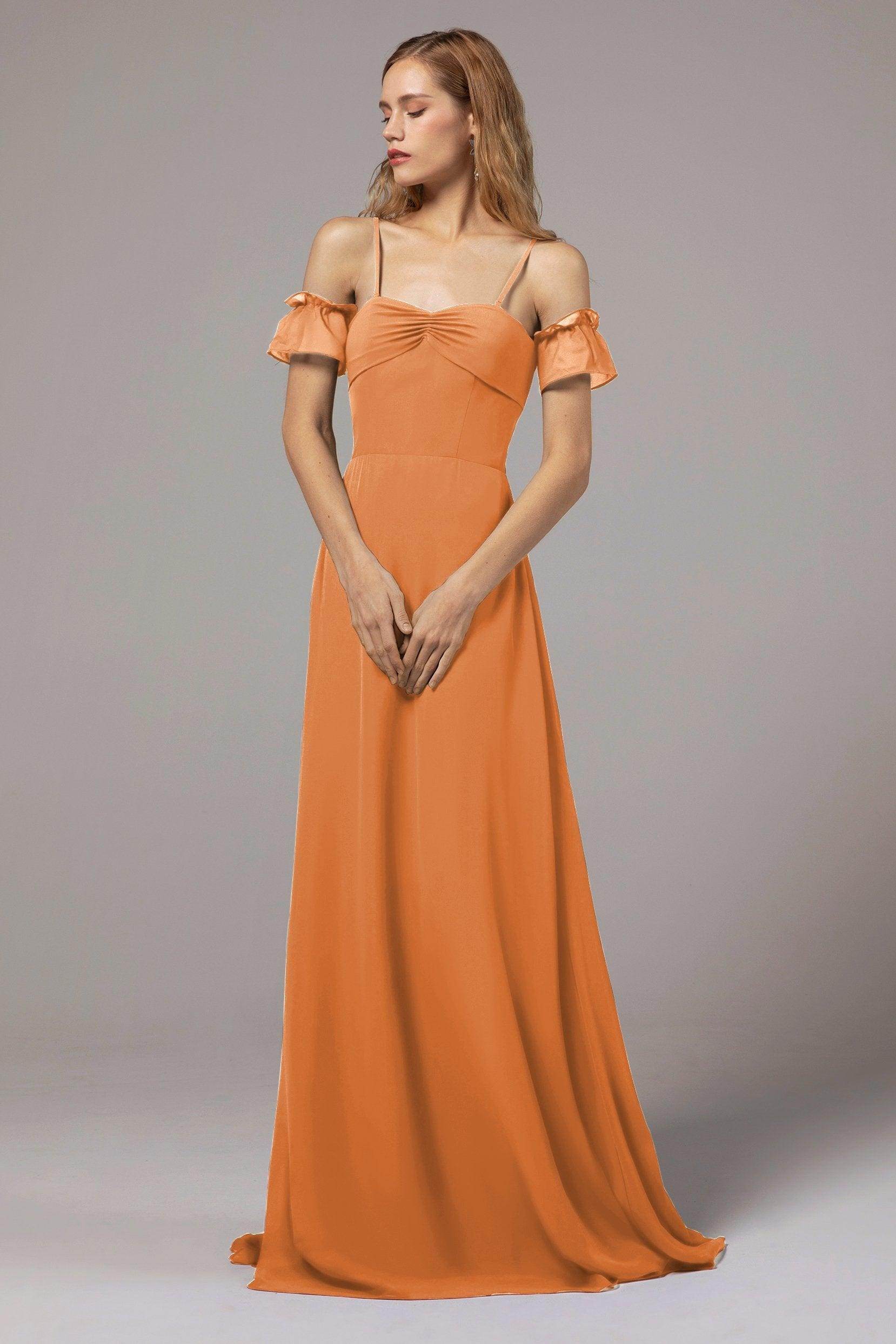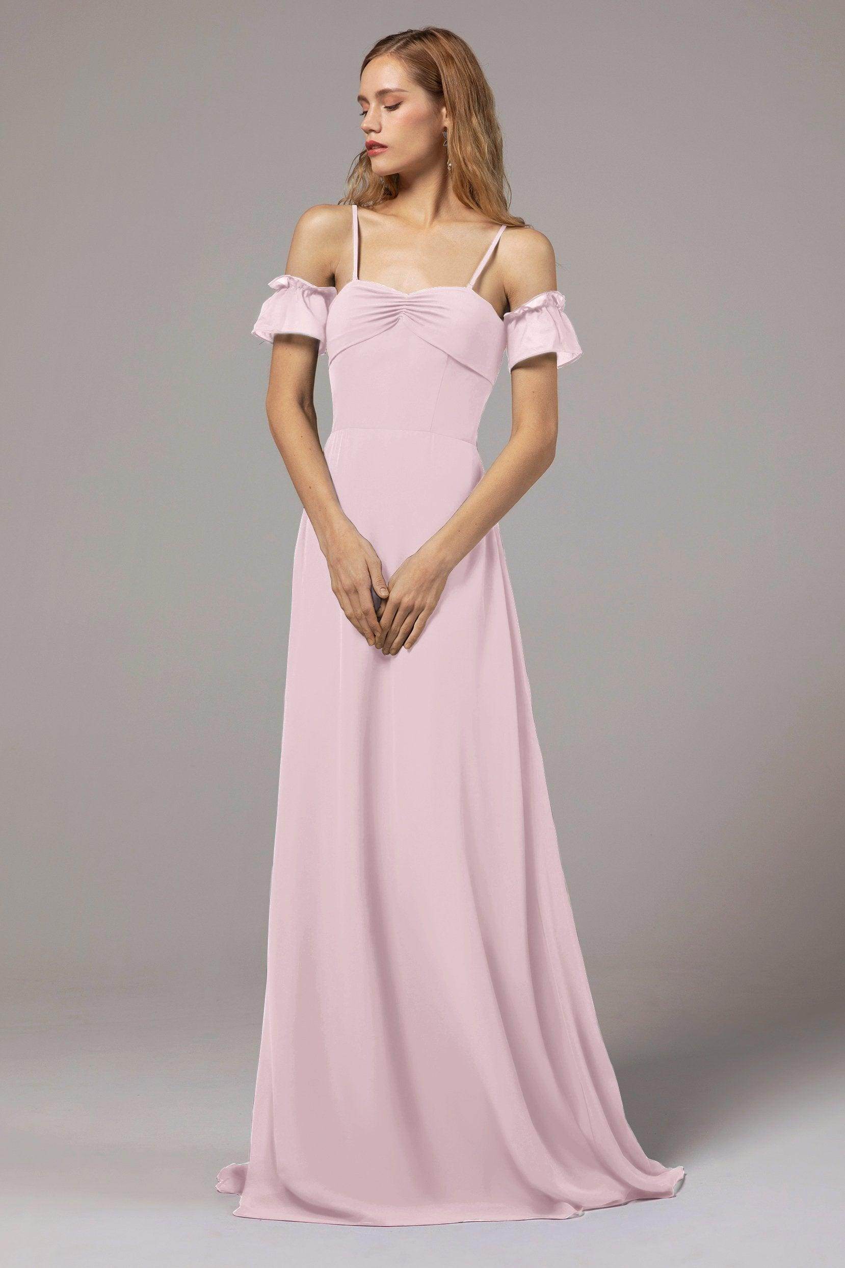 This bridesmaid dress blends elegance and refinement. The back zipper ensures easy wear, while flowing chiffon and the A-line skirt exude grace. Delicate straps and sleeveless design highlight the shoulders and arms. A natural waistline and pleating add sophisticated detail, making it perfect for any formal event.