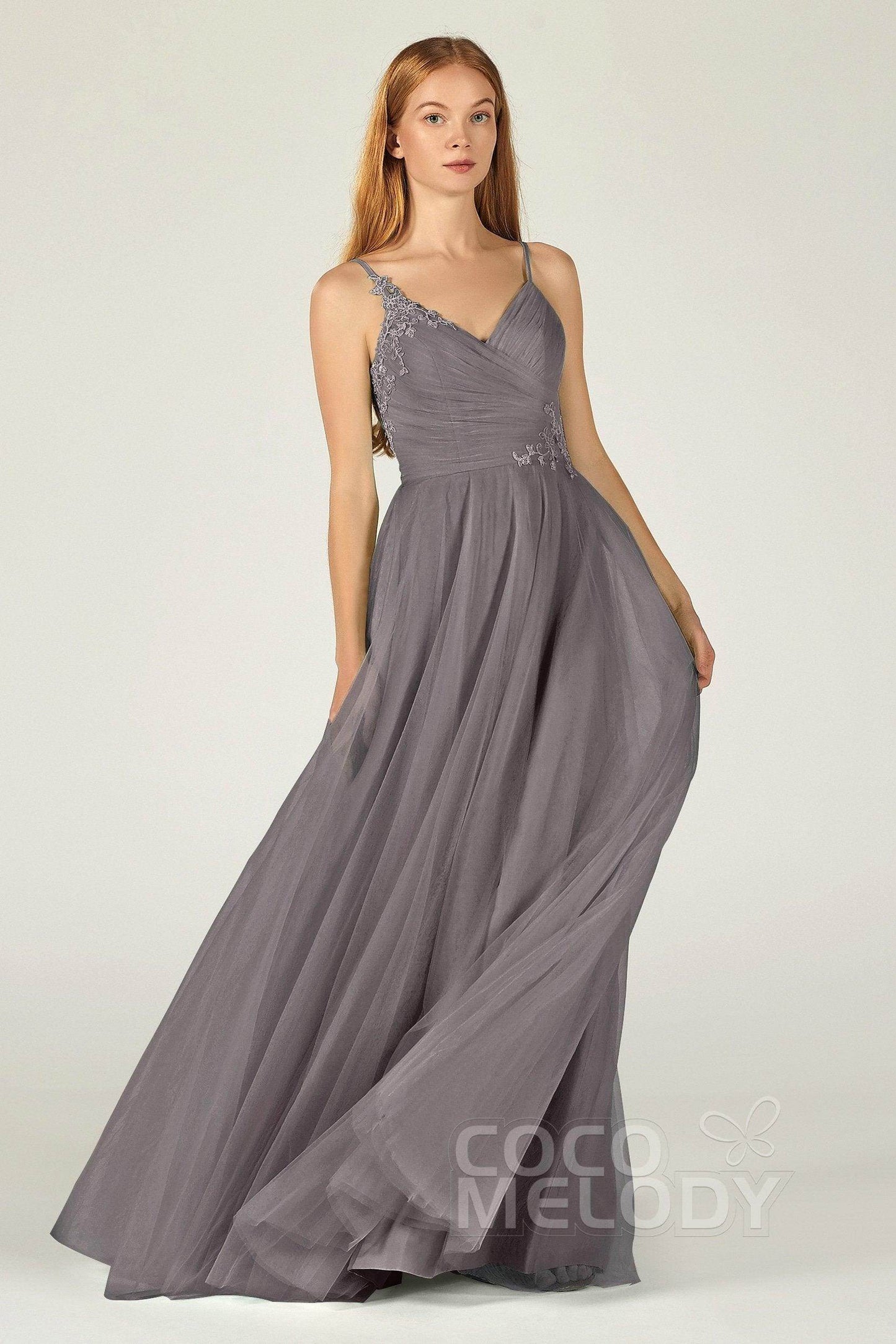 A-Line Floor Length Tulle Bridesmaid Dress CB0383