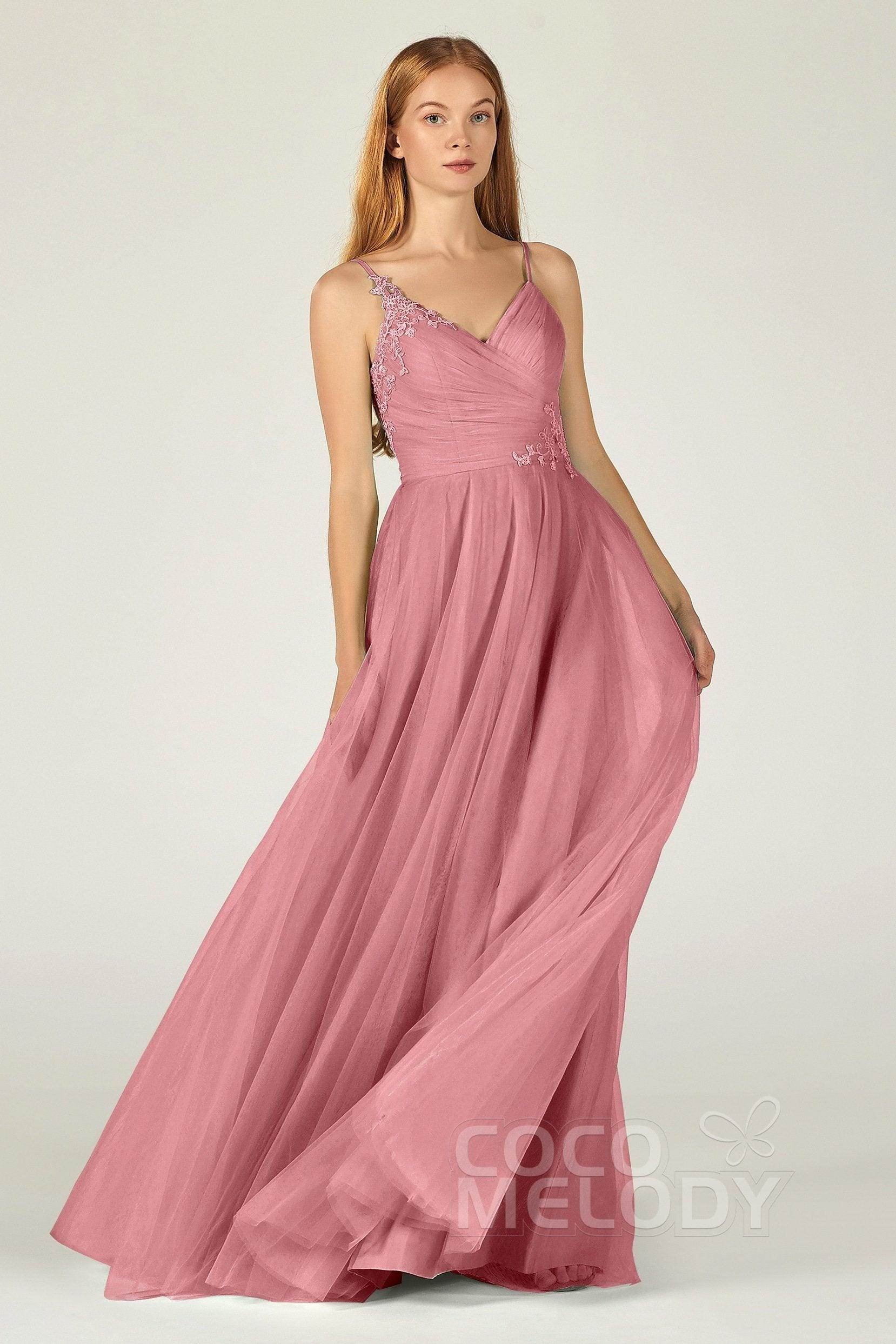 A-Line Floor Length Tulle Bridesmaid Dress CB0383