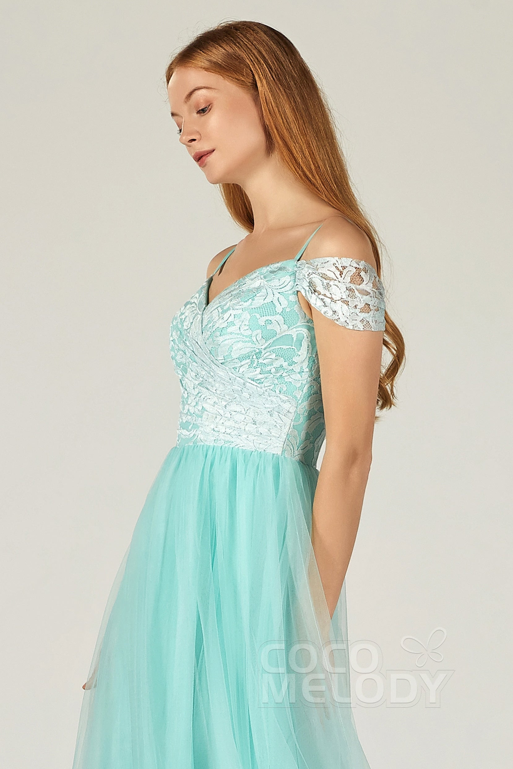 A-Line Floor Length Tulle Lace Bridesmaid Dress CB0384
