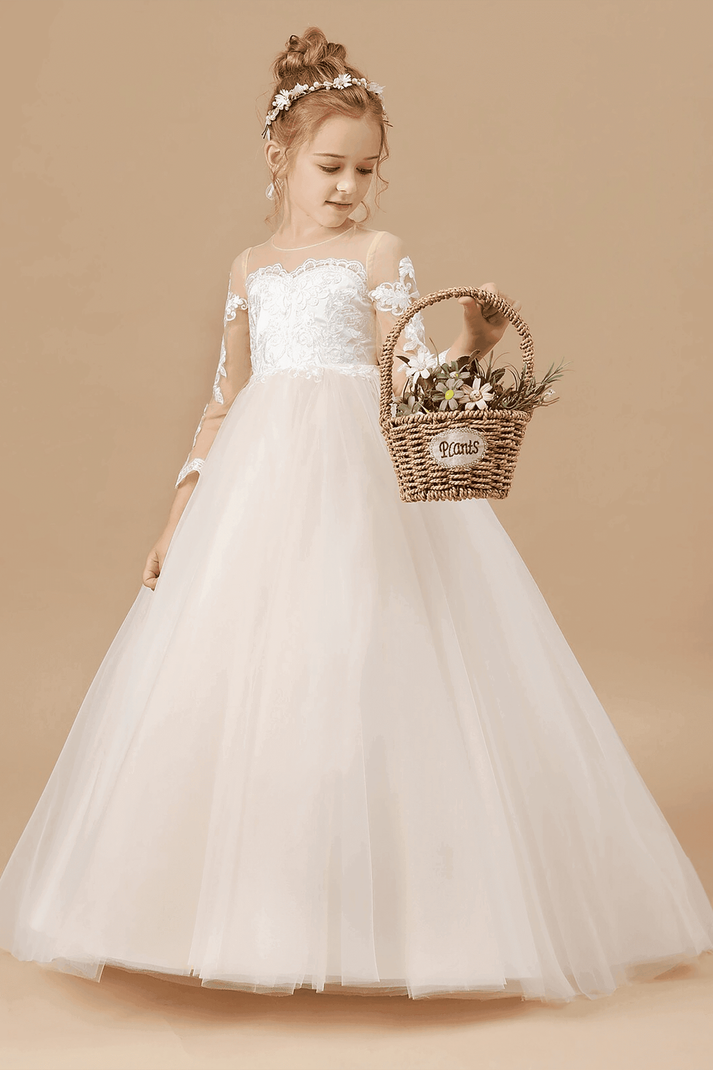 Extended Production Starts 12/20 PSTA-Line Floor Length Tulle Lace Flower Girl Dress CF0303