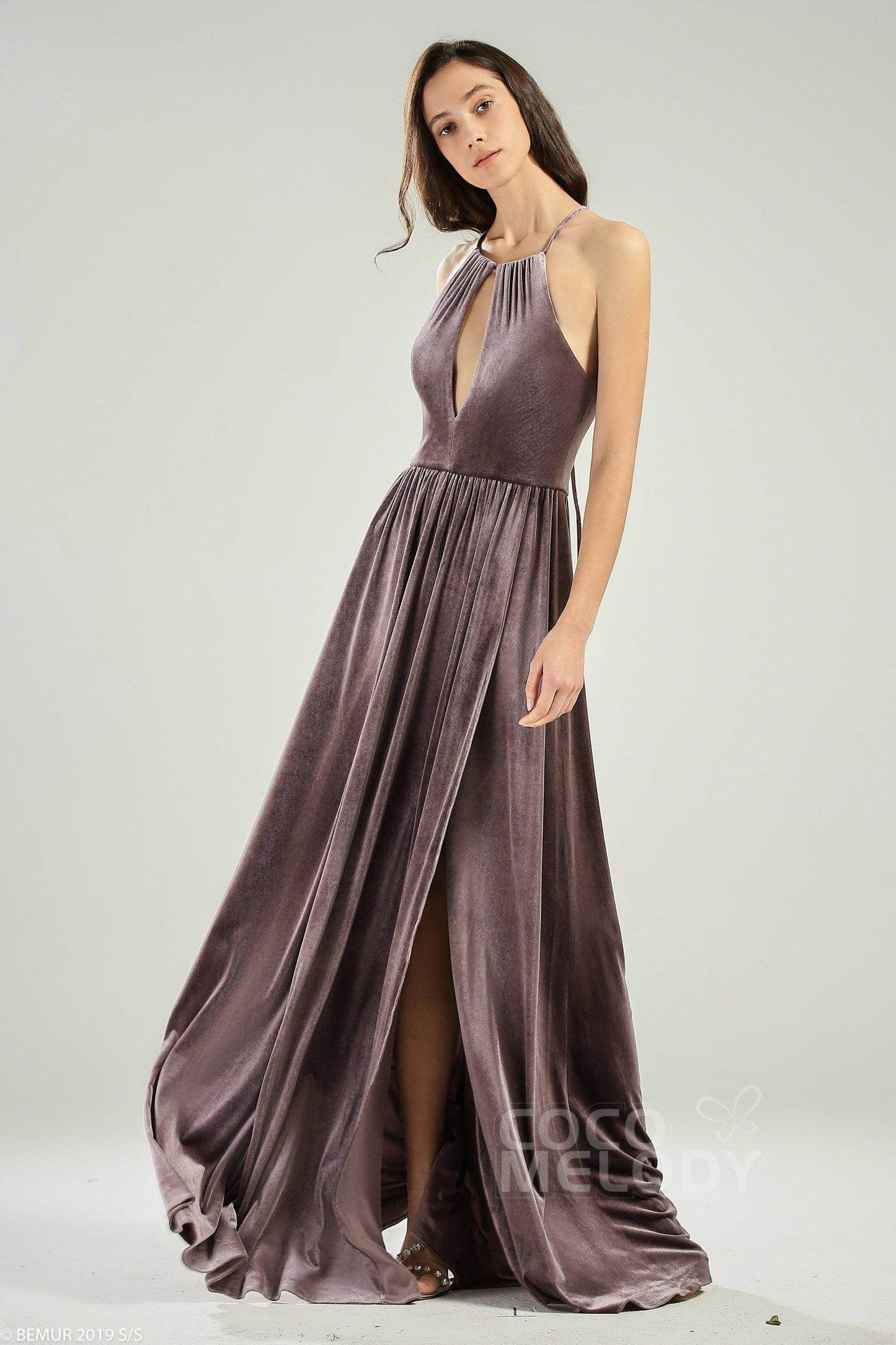 A-Line Floor Length Velvet Bridesmaid Dress CB0647