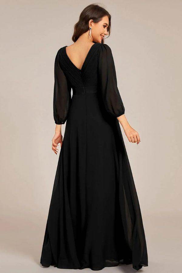 Turn heads in this breathtaking A-line chiffon gown! Featuring a refined V-neck, flowing long sleeves, and an elegant sash, this maxi dress brings a touch of romance to any setting. Perfect for prom, it offers graceful movement and timeless charm, making every step unforgettable.