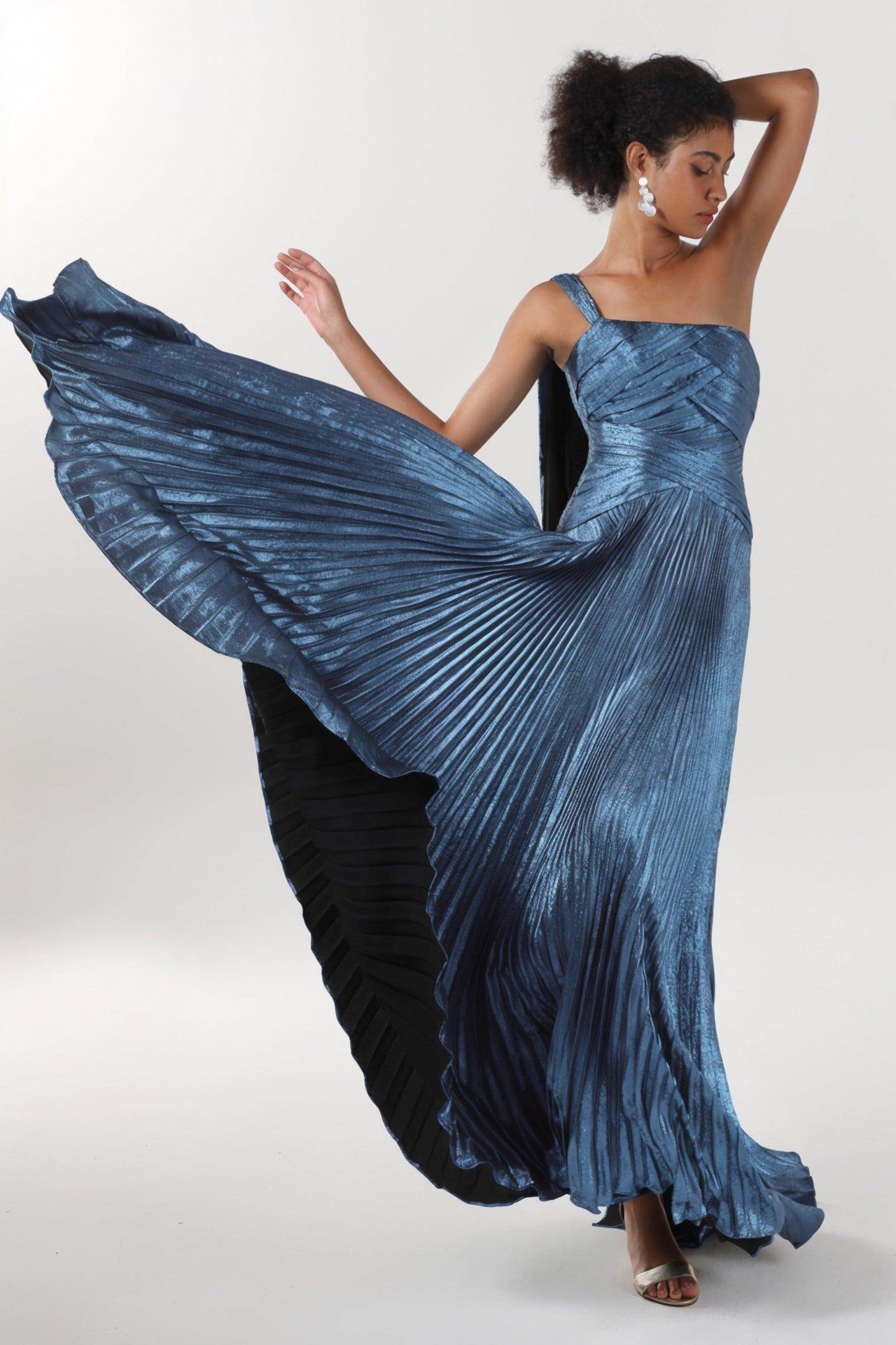 Dazzle in our One-Shoulder A-Line Maxi Dress, designed in eye-catching metallic fabric! Perfect for Formal & Evening Dresses, Wedding Guest Dresses, Cocktail & Party Dresses, Prom & Formal Dresses, and Military Ball Dresses, make every occasion a memorable celebration of style!
