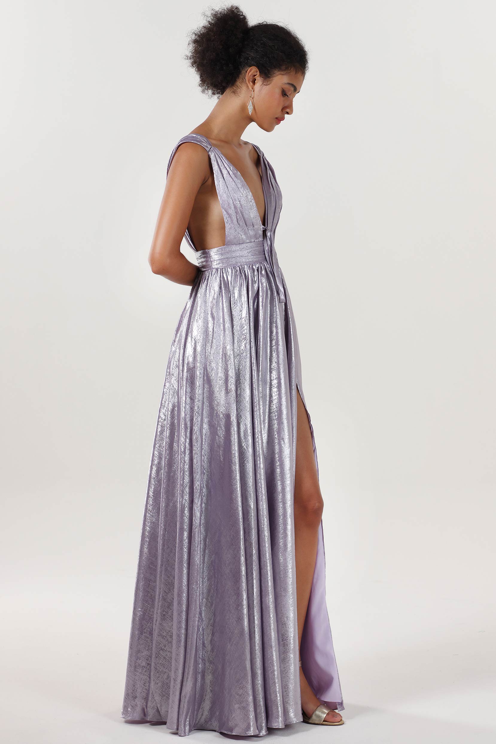 Elevate your style with our V-Neck A-Line Maxi Dress, crafted from shimmering metallic fabric! Perfect for Formal & Evening Dresses, Wedding Guest Dresses, Cocktail & Party Dresses, Prom & Formal Dresses, and Military Ball Dresses, make every occasion a dazzling celebration!