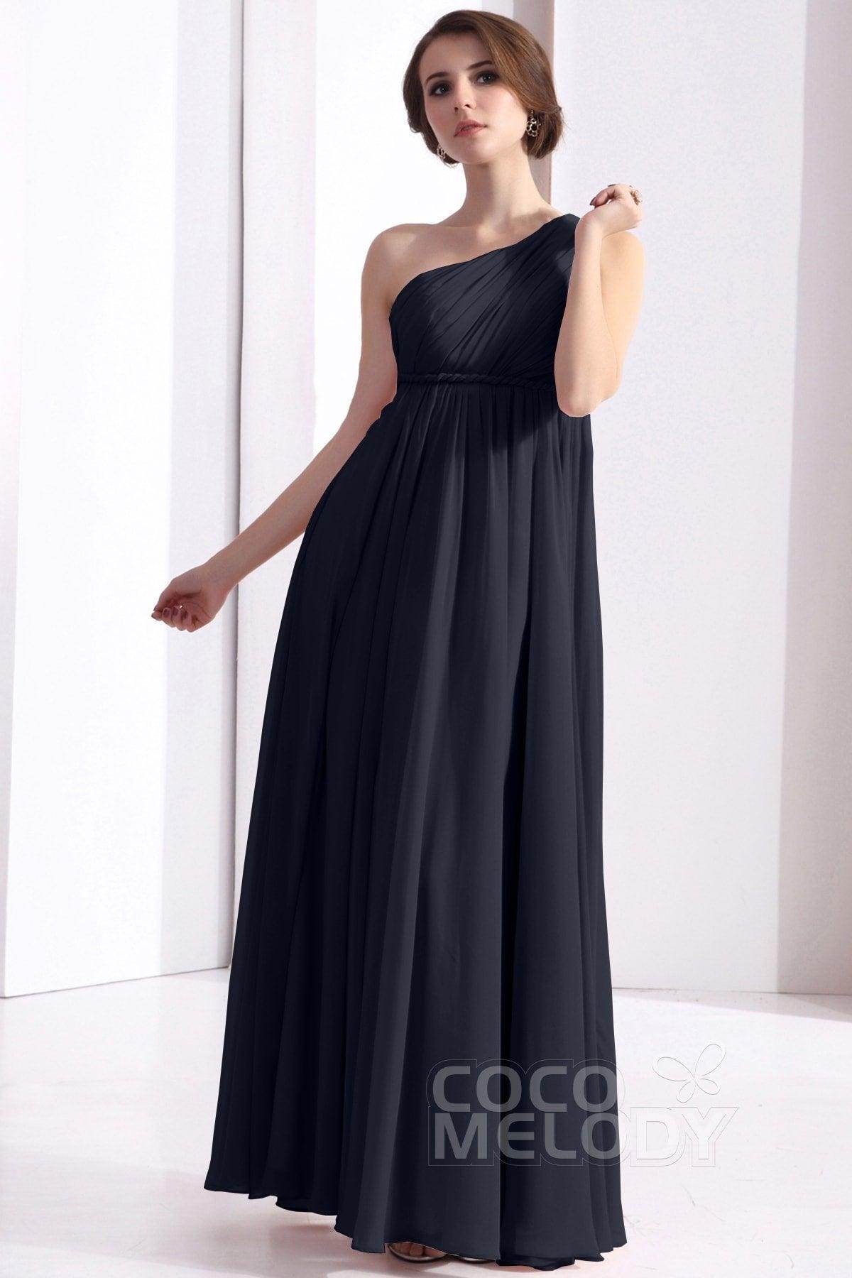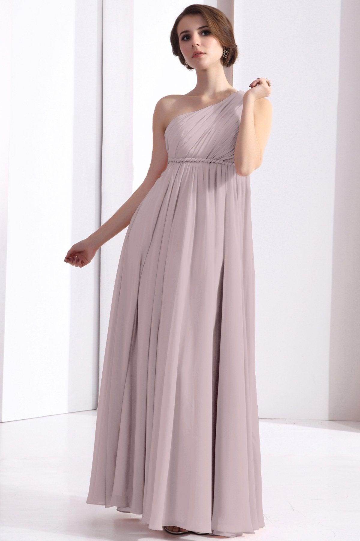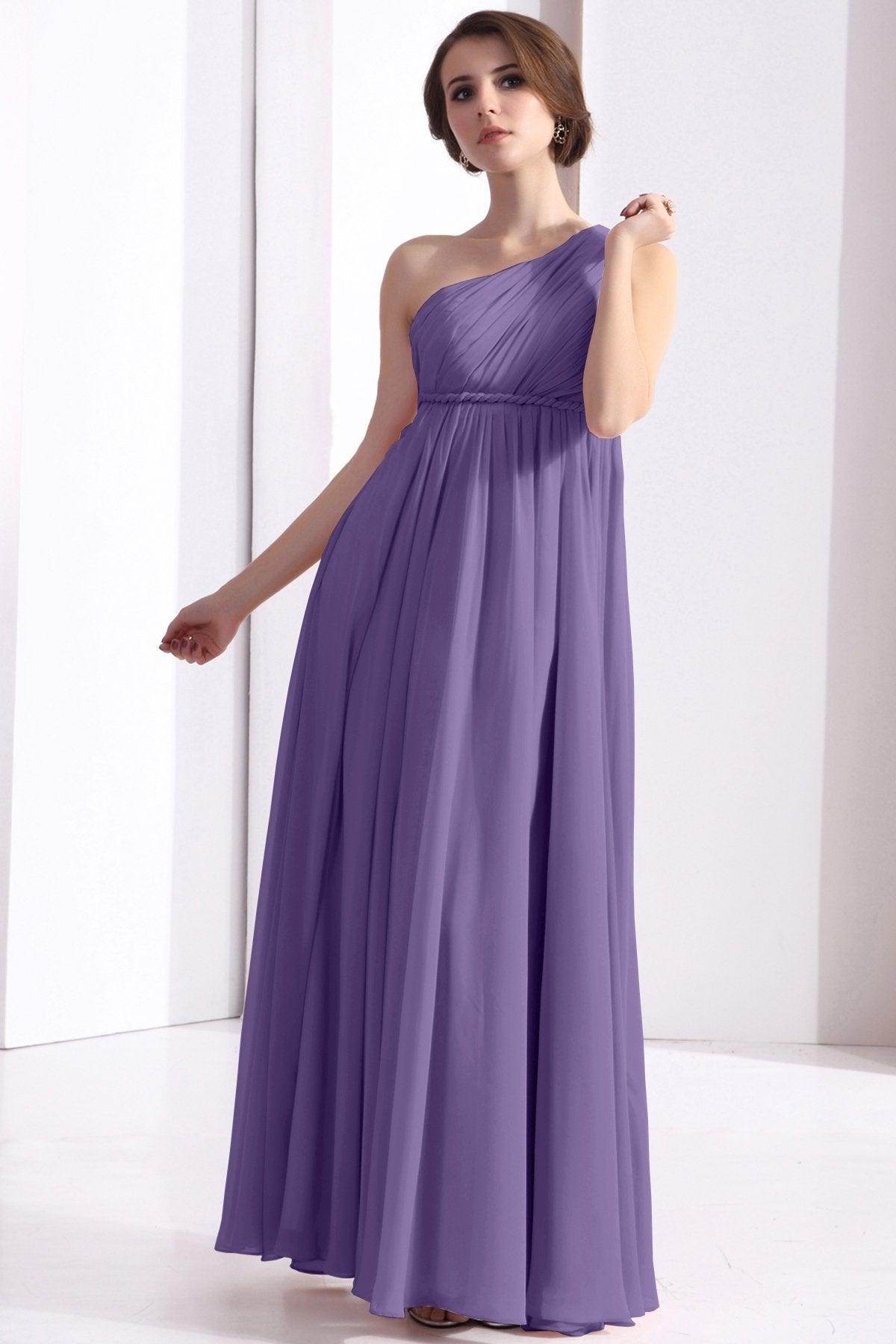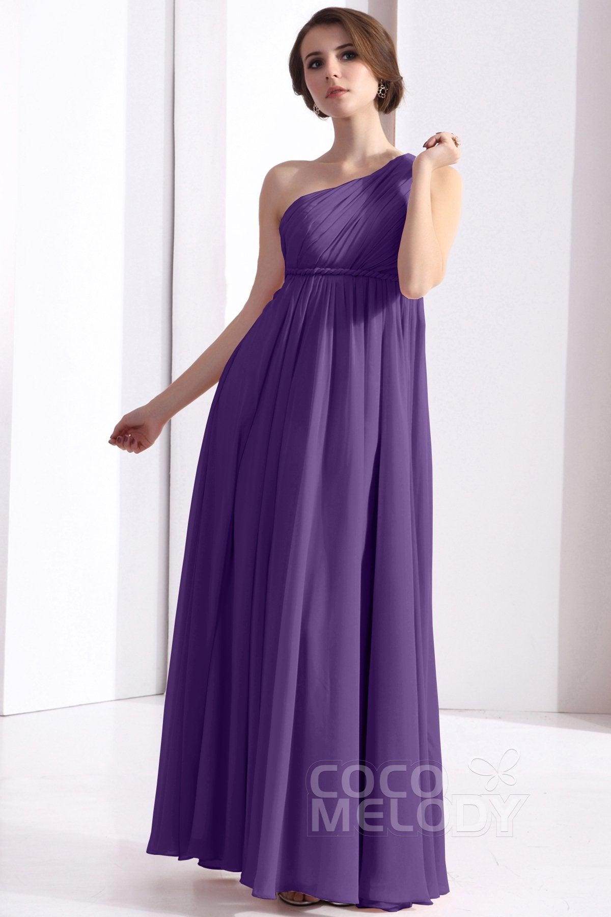 This elegant bridesmaid dress is crafted from lightweight chiffon, featuring a flattering sheath-column silhouette. The one-shoulder design highlights the shoulders, while graceful pleating and draping enhance the floor-length skirt, creating a stunning look perfect for any wedding. A side zipper ensures a smooth fit.