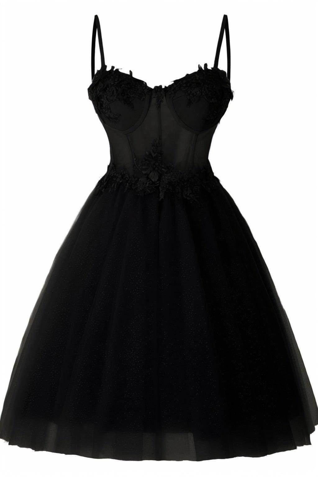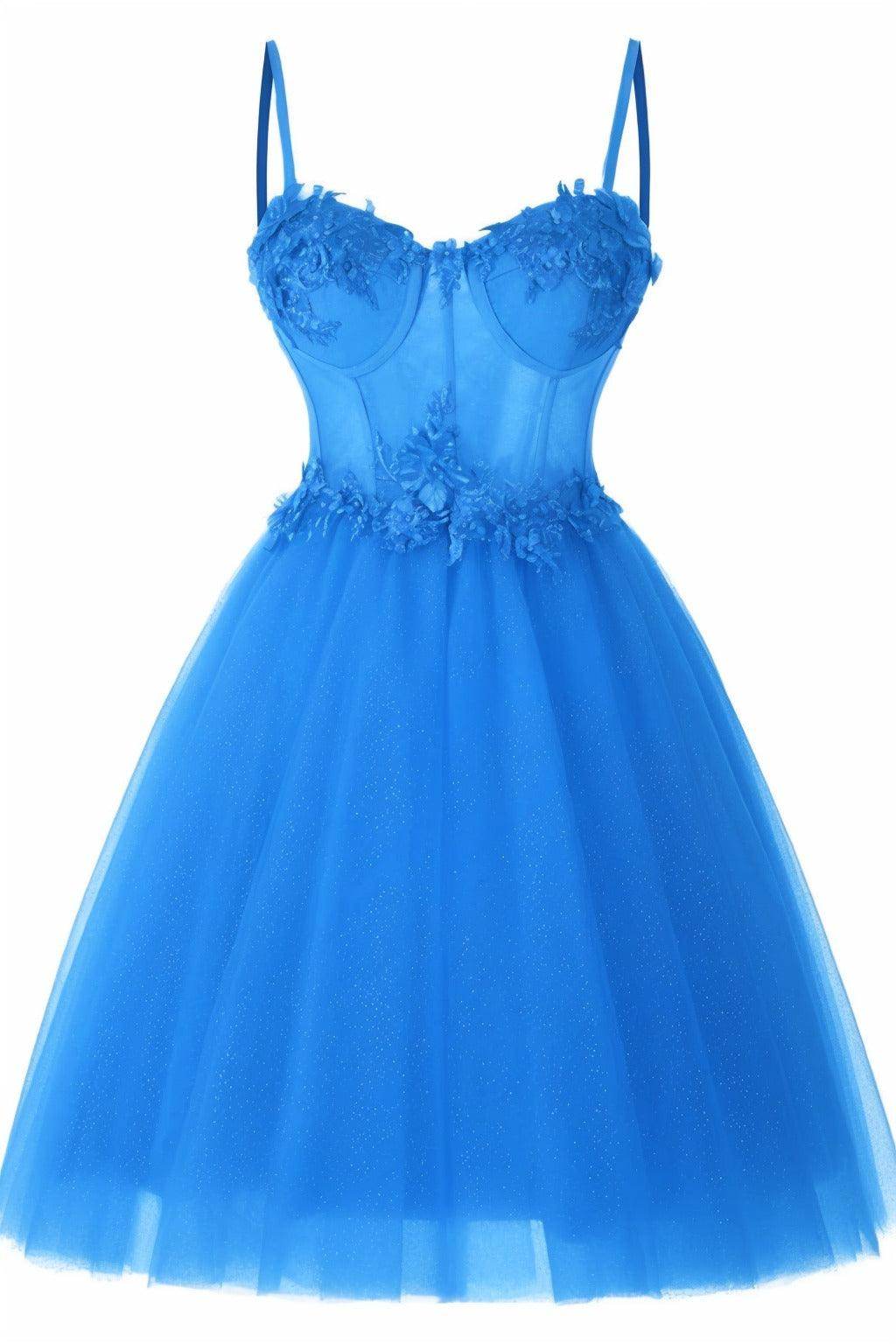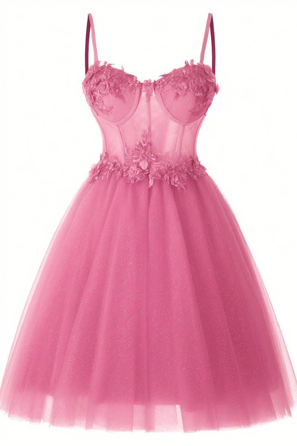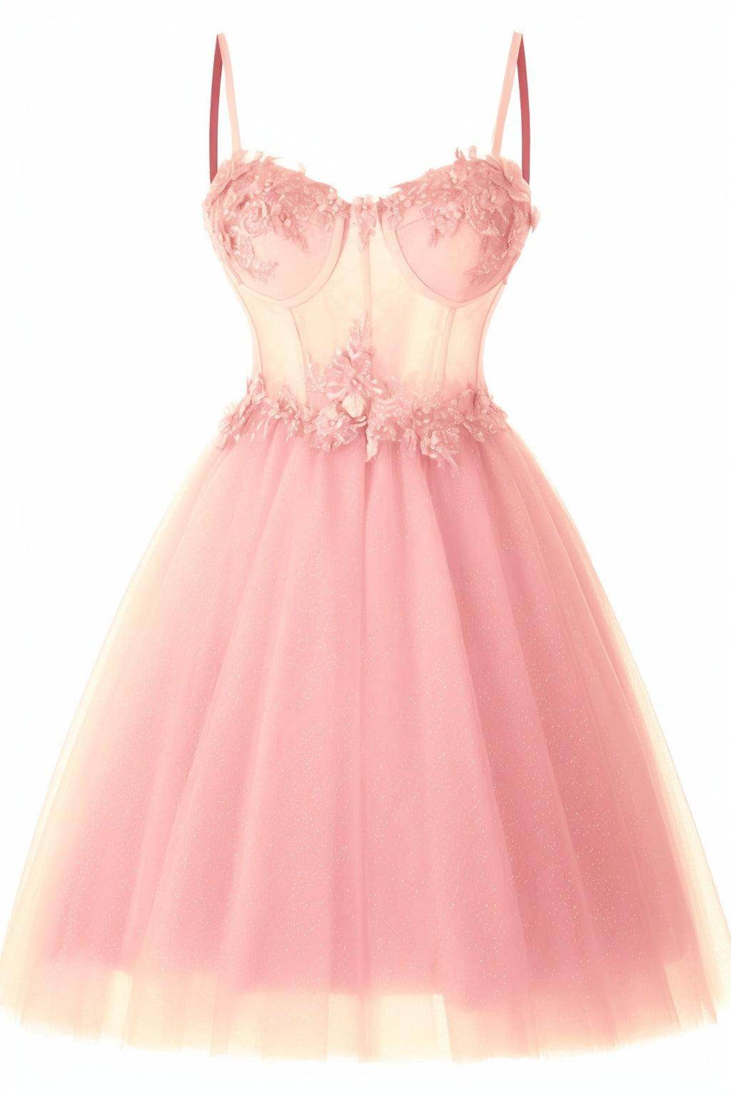 Introducing our magnificent Ball Gown Short-Mini Tulle Prom Dress. It has an inherent waist and dainty spaghetti straps that make it quite charming. Its lace-up corset back and tulle fabric create a beautiful silhouette, making it ideal for a variety of situations.
