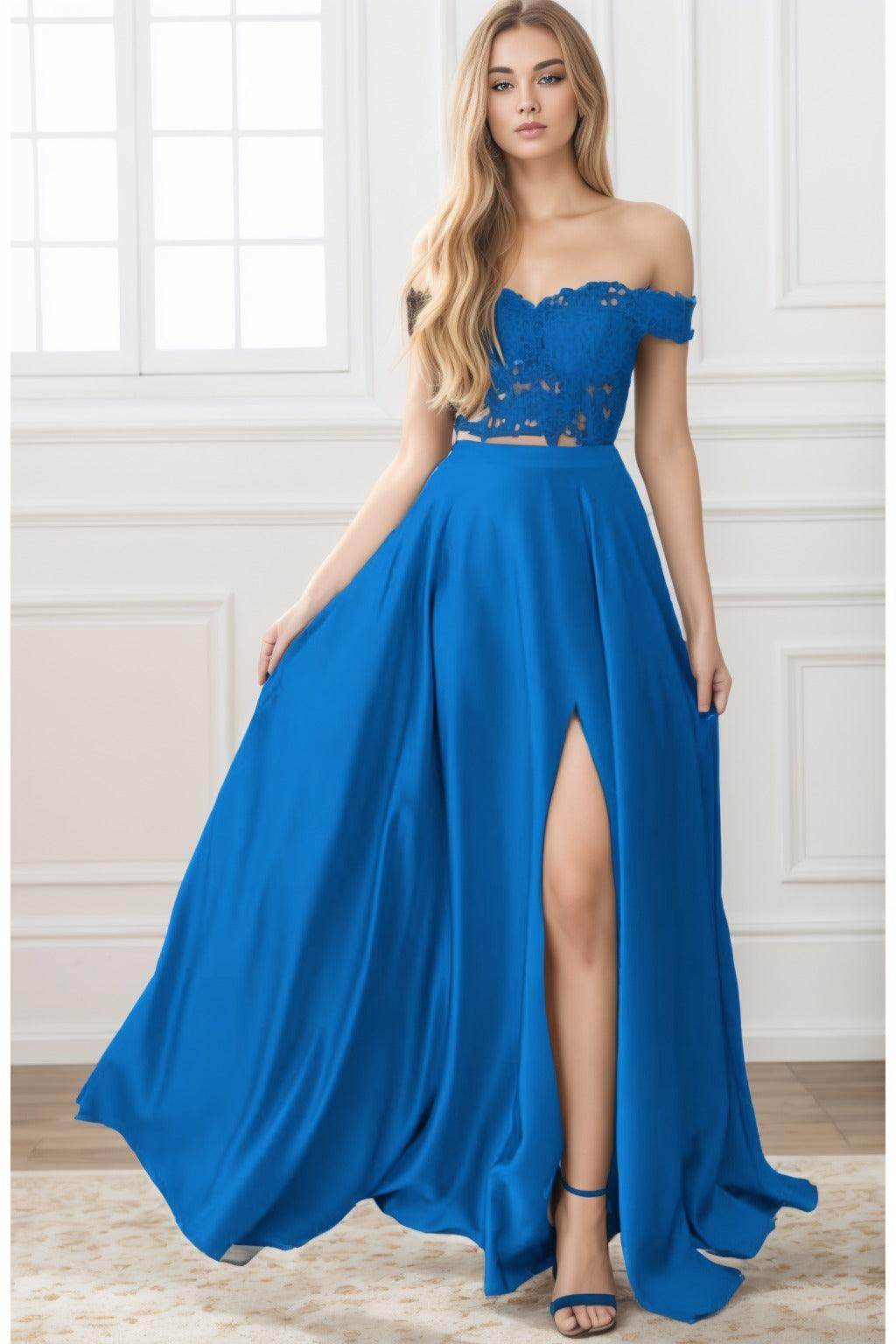 Introducing our luxurious A-Line Sweep-Brush Train Elastic Satin Prom Dress. It exudes refinement with lovely off-the shoulder neckline. Its elastic satin fabric and lace-up corset back guarantee a beautiful silhouette with a contemporary split embellishment, making it ideal for special occasions.