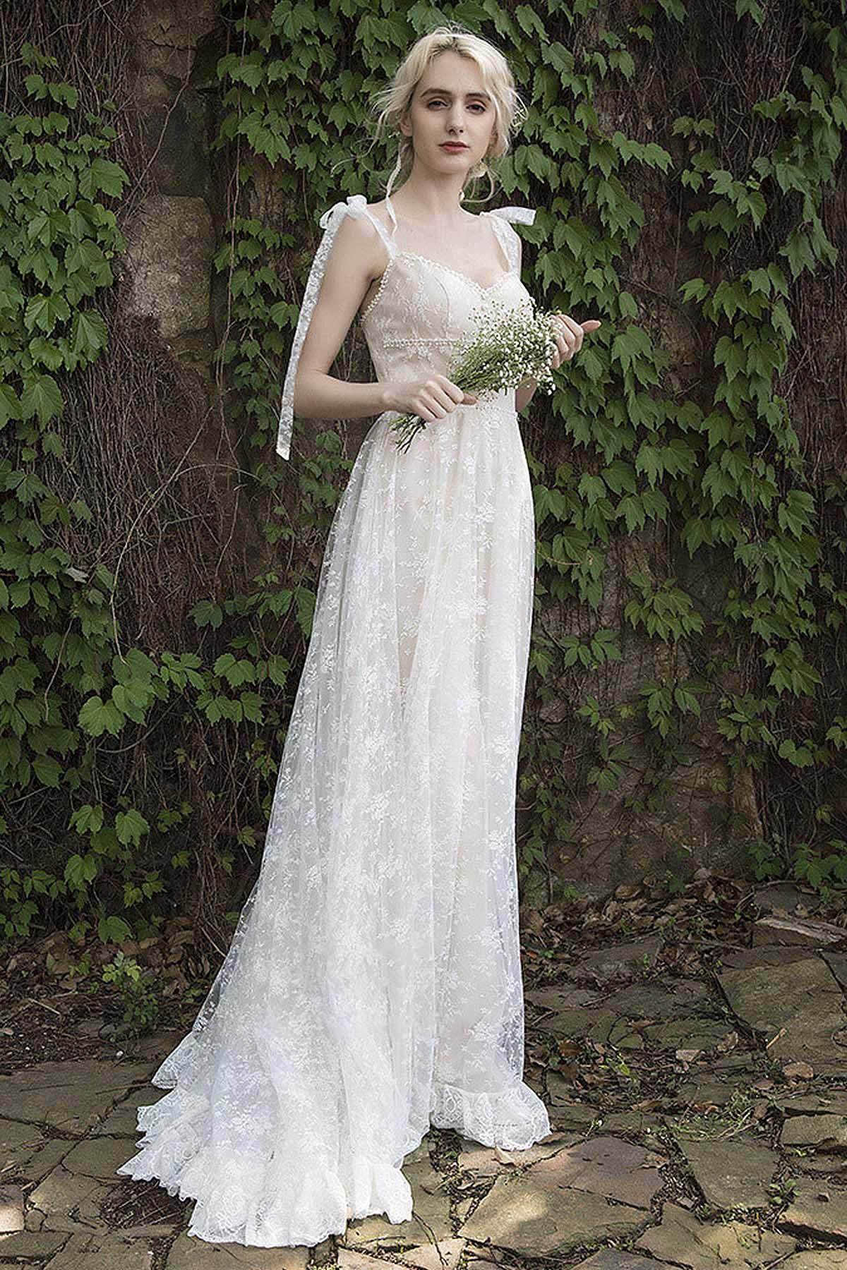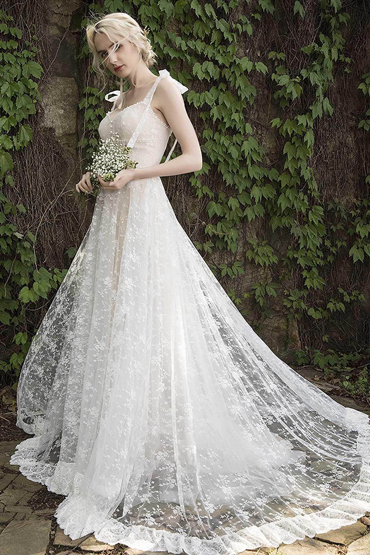 A-Line Sweep-Brush Train Lace Wedding Dress CW3023
