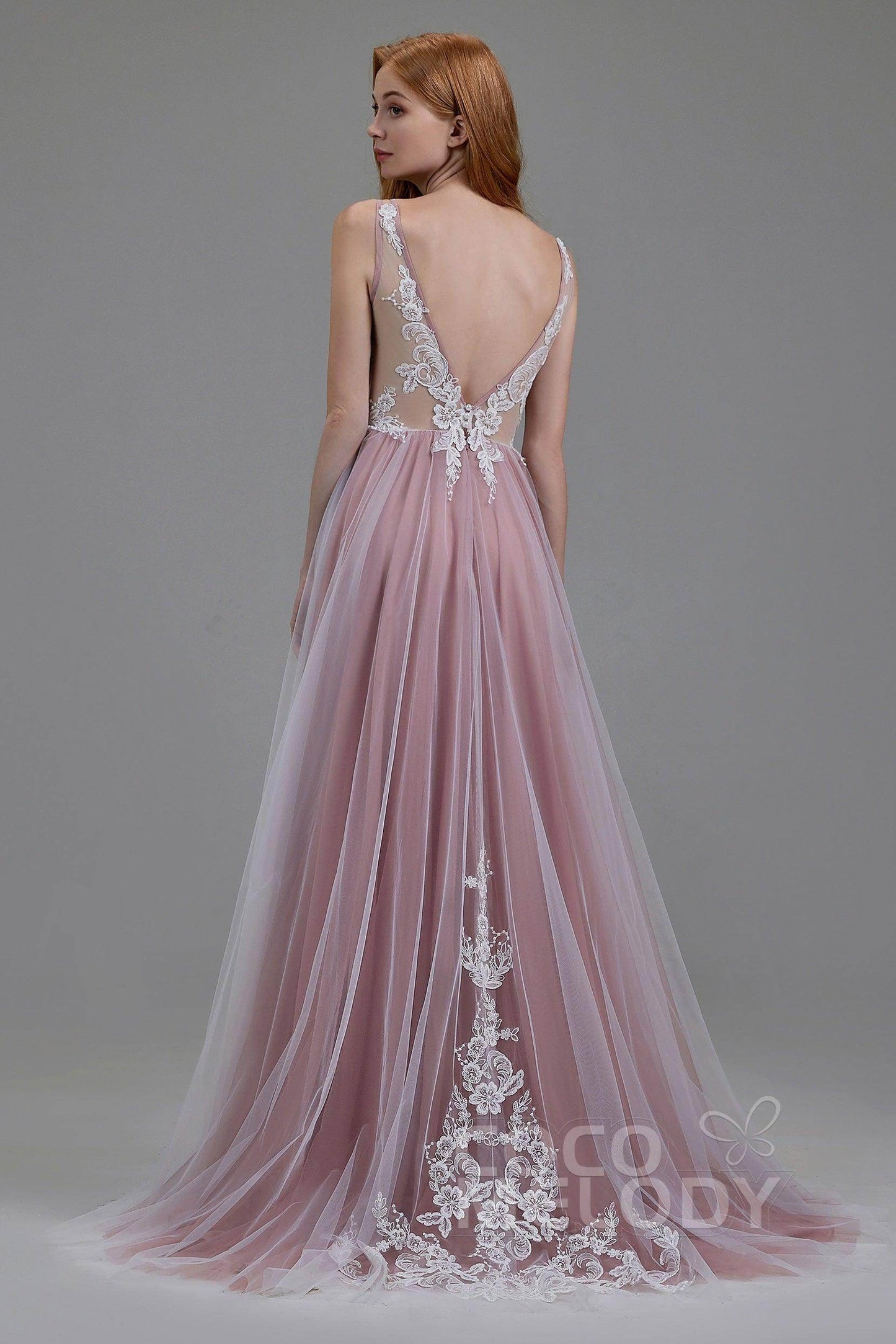 A-Line Sweep-Brush Train Tulle Chiffon Wedding Dress LD5832