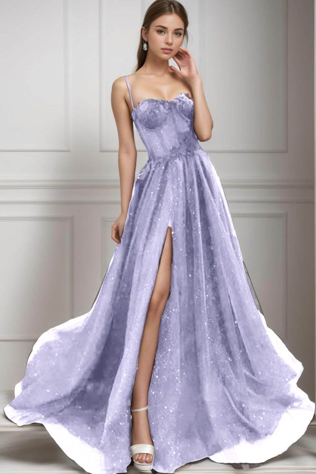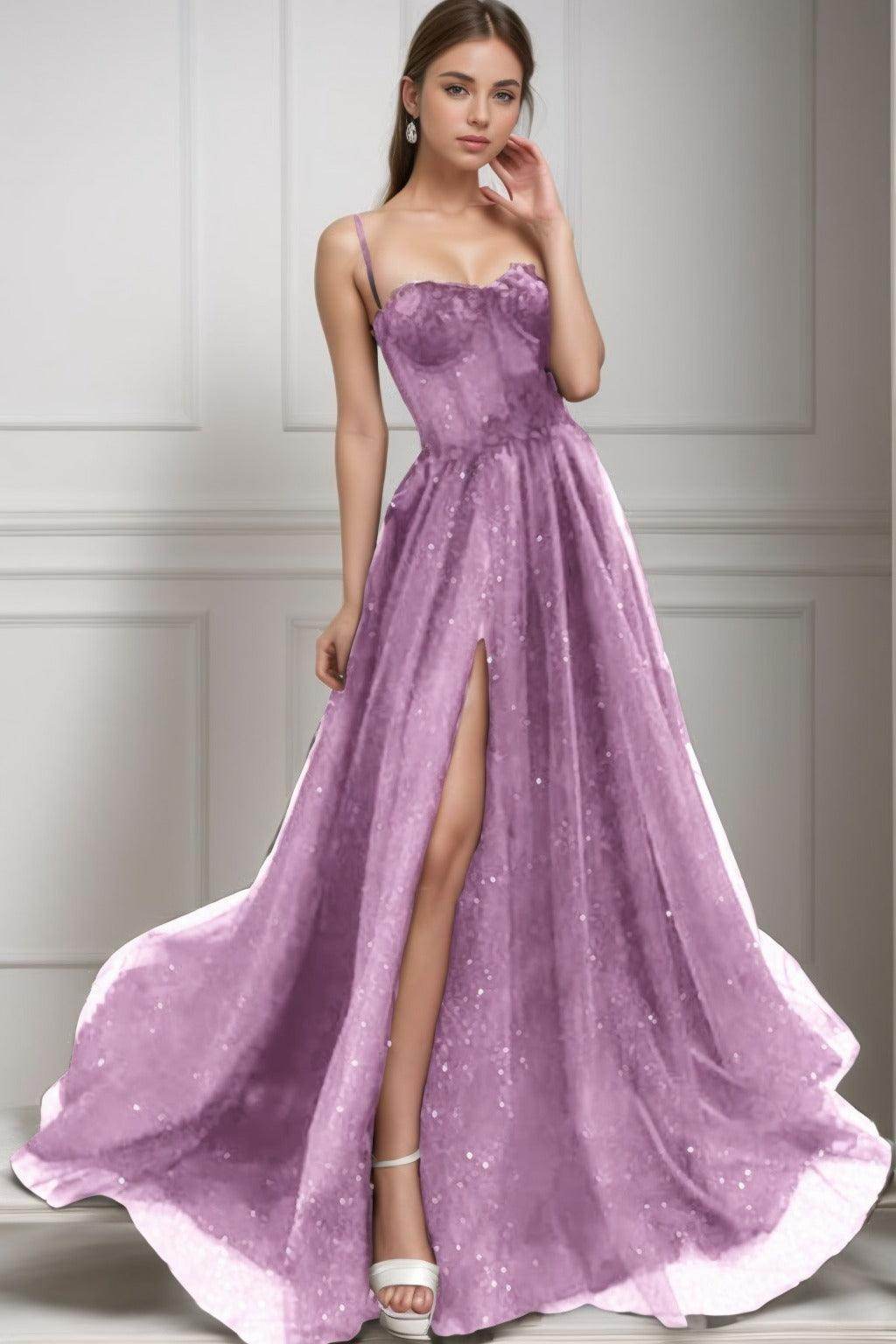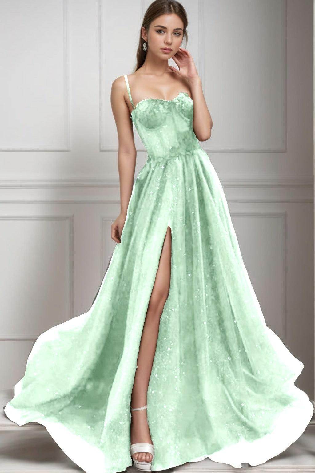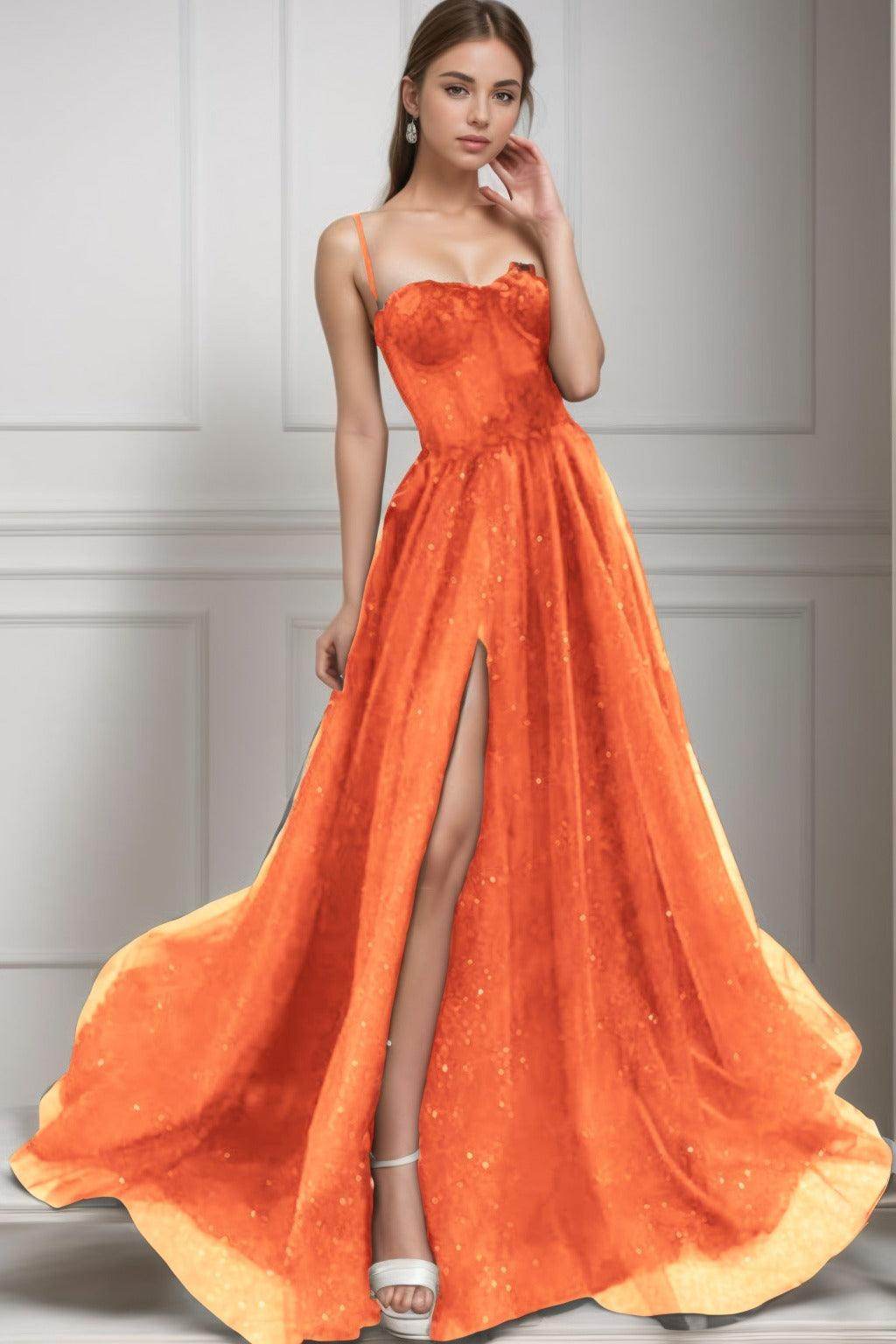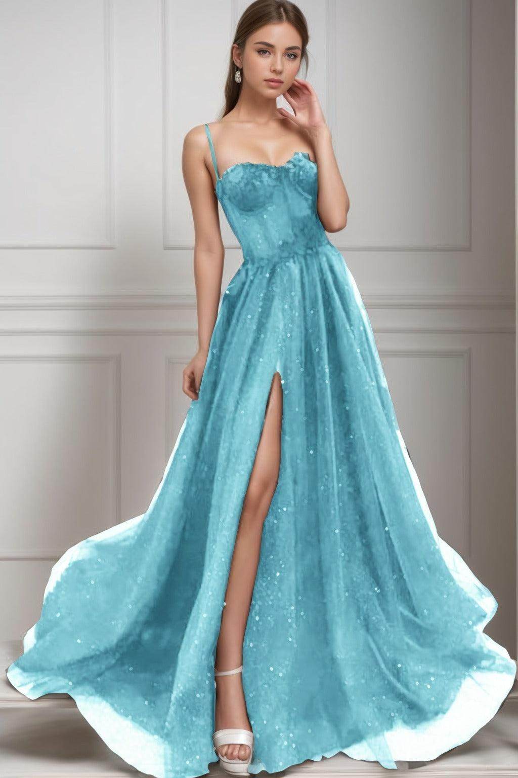 Introducing our captivating A-Line Sweep-Brush Train Tulle Prom Dress! Featuring a timeless bateau neckline, sleeveless design, and alluring split embellishment, it's a symbol of sophistication. Perfect for prom, weddings, or formal events