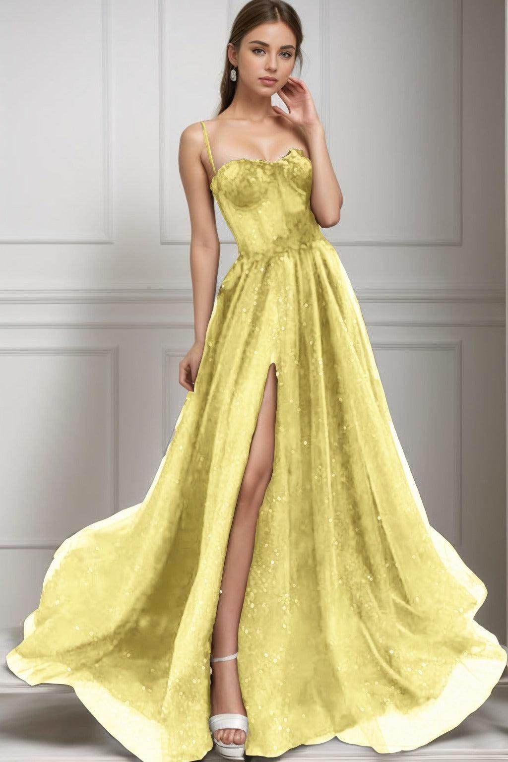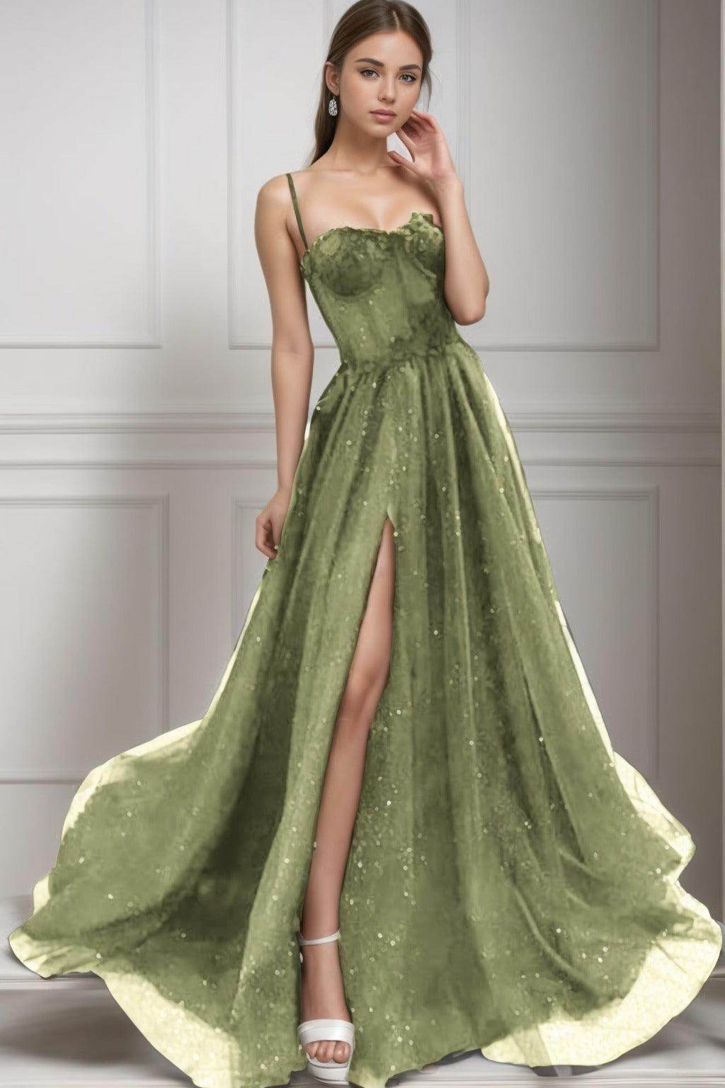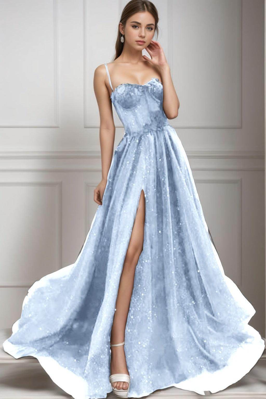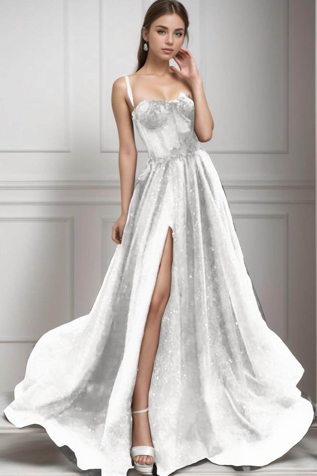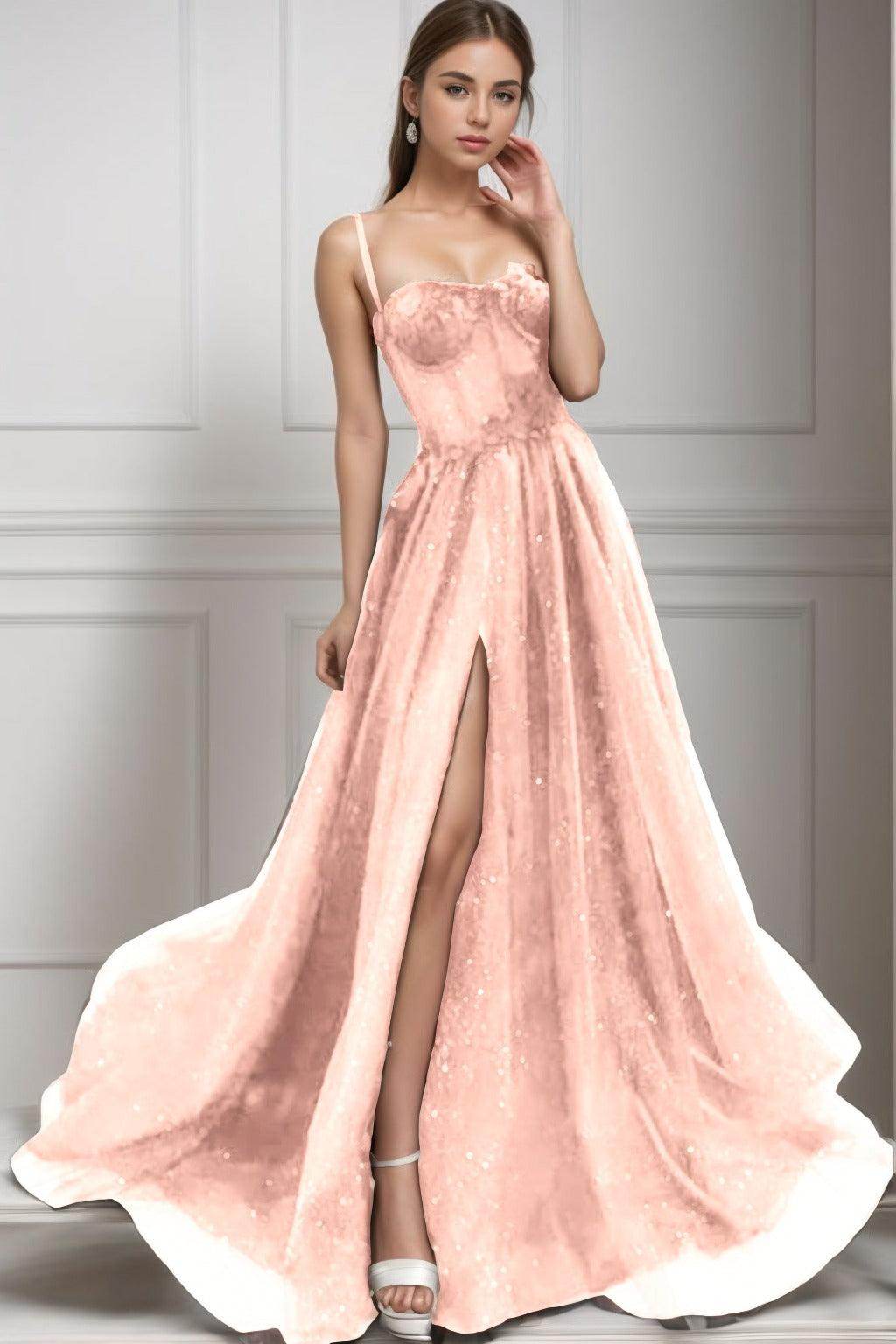 Introducing our captivating A-Line Sweep-Brush Train Tulle Prom Dress! Featuring a timeless bateau neckline, sleeveless design, and alluring split embellishment, it's a symbol of sophistication. Perfect for prom, weddings, or formal events
