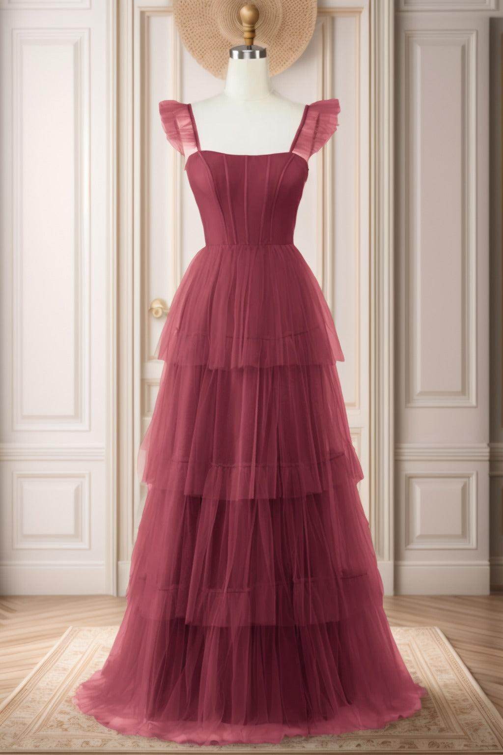 Introducing our versatile Prom dress! A-Line silhouette with Straps neckline and Sleeveless design, perfect for various occasions. Featuring a Lace Up-Corset back and delicate Tulle fabric, it exudes elegance with its Sweep-Brush Train length.
