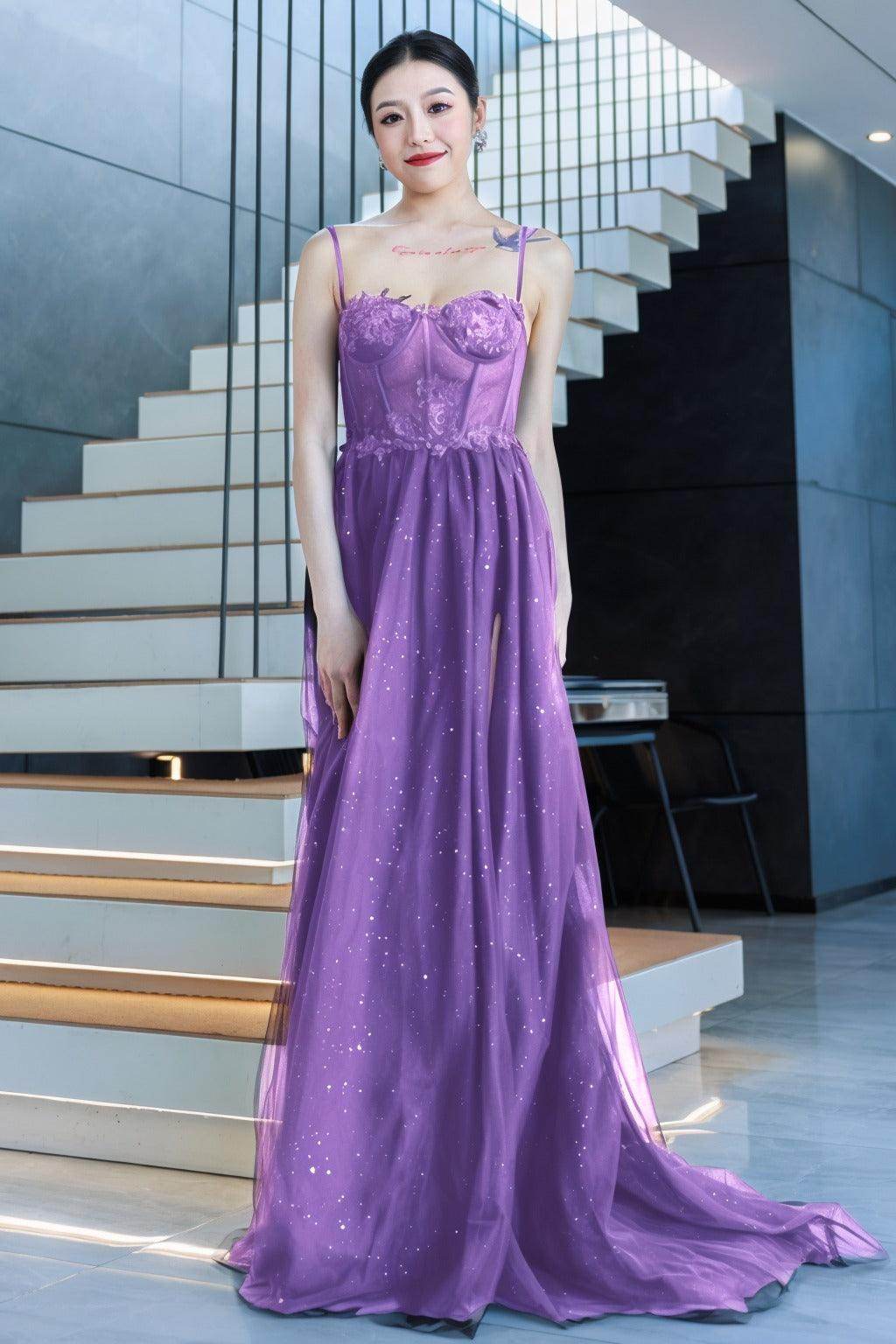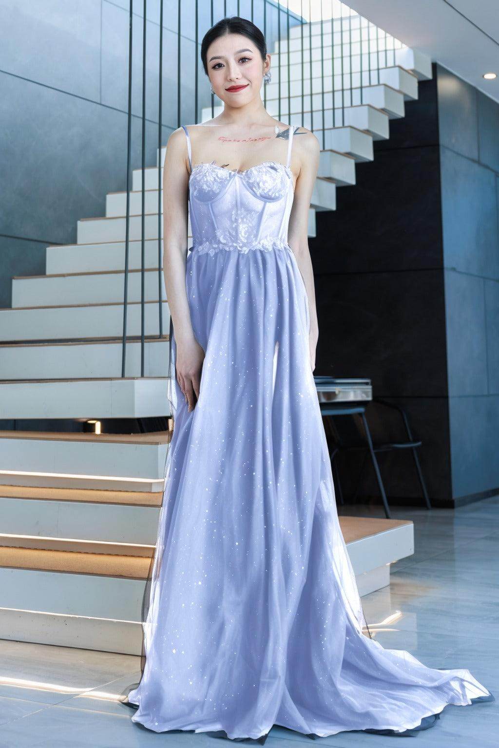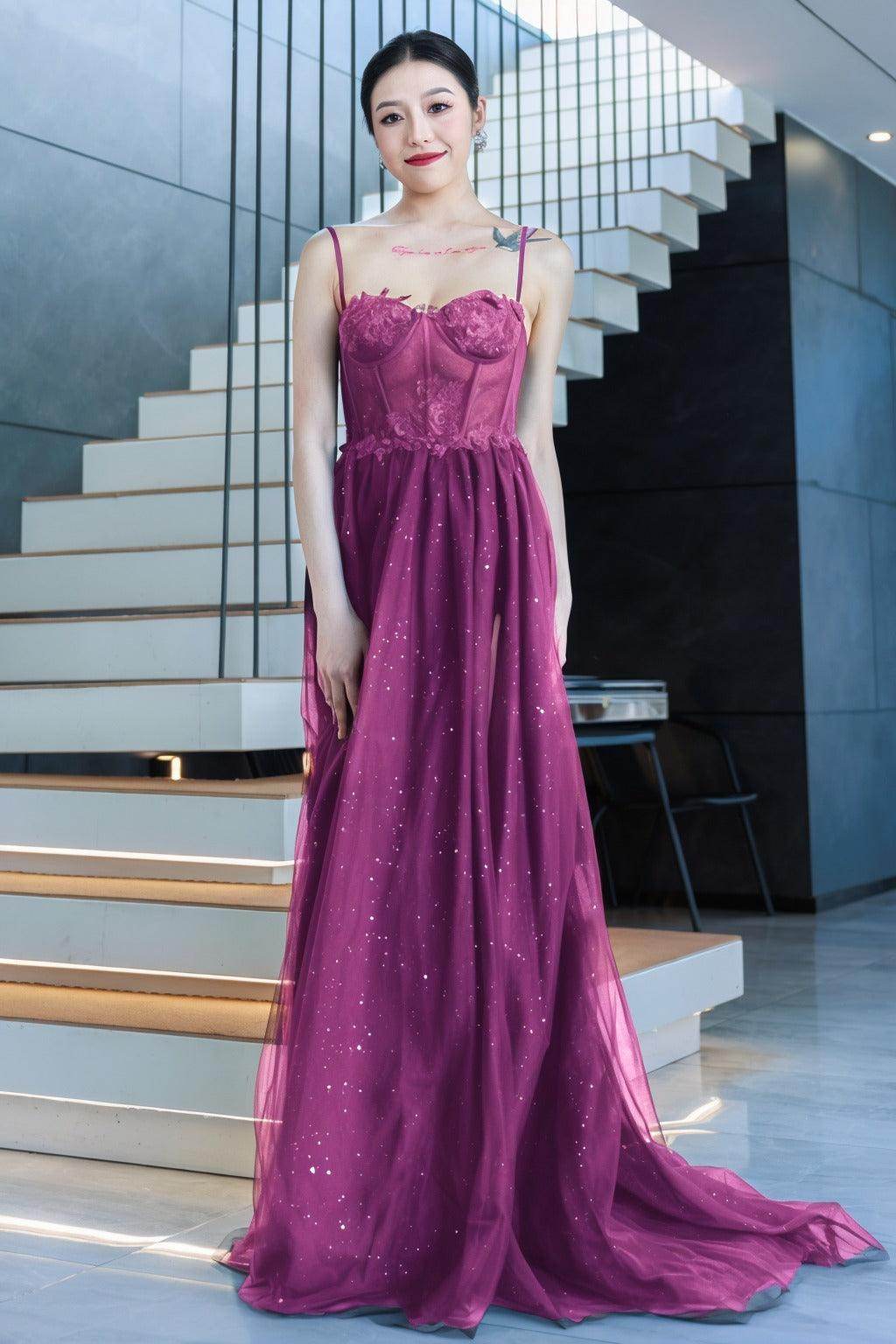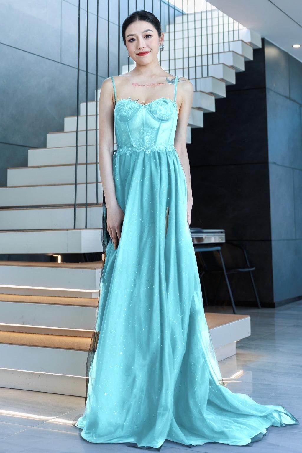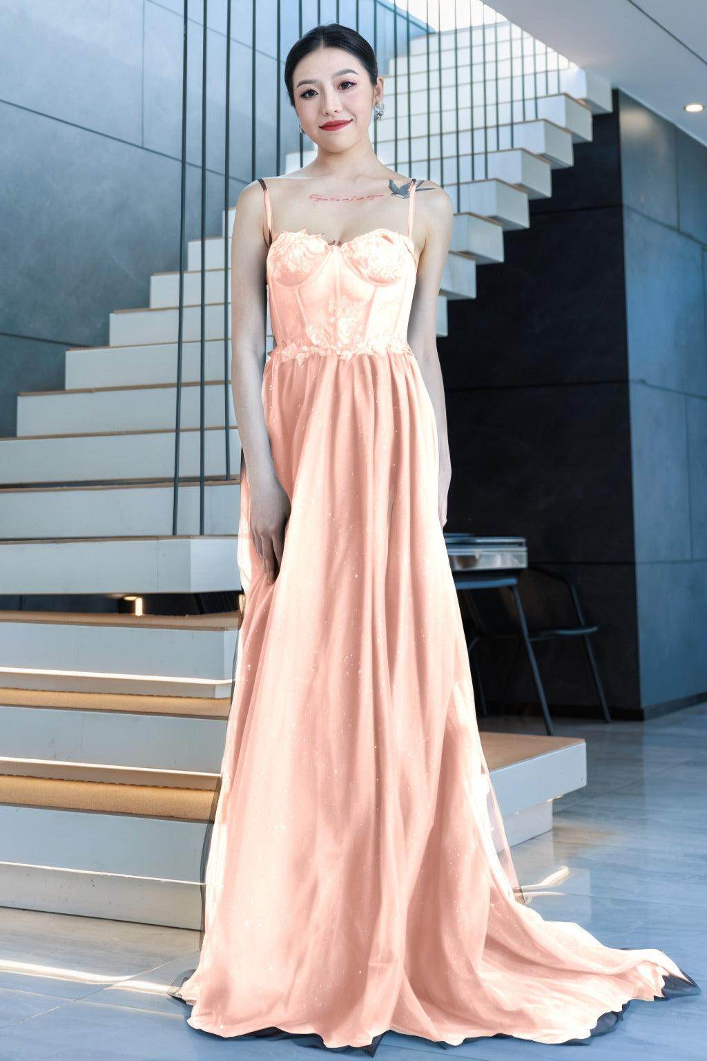 A-Line Sweep-Brush Train Tulle Prom Dress CS0480