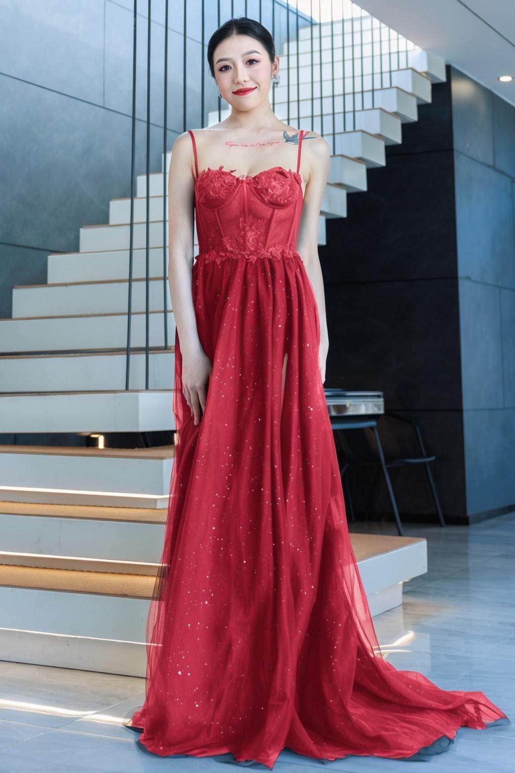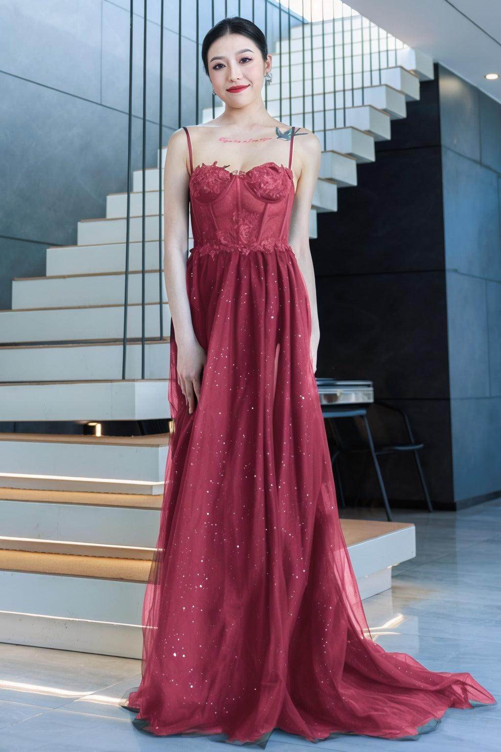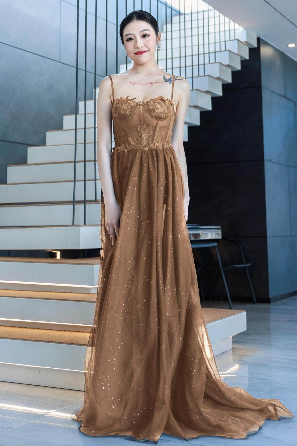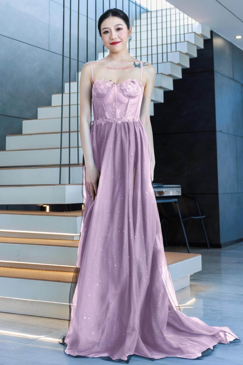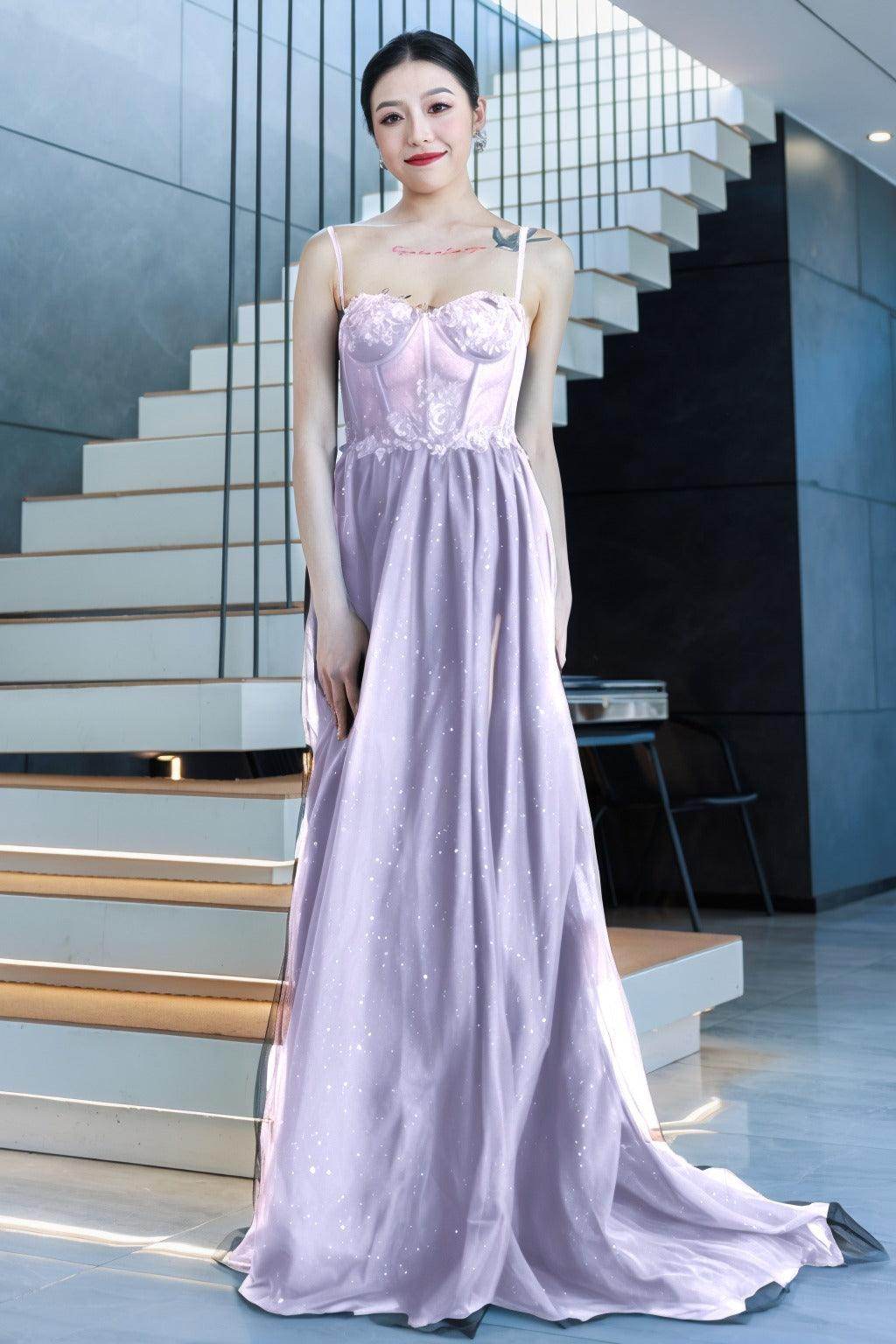 A-Line Sweep-Brush Train Tulle Prom Dress CS0480