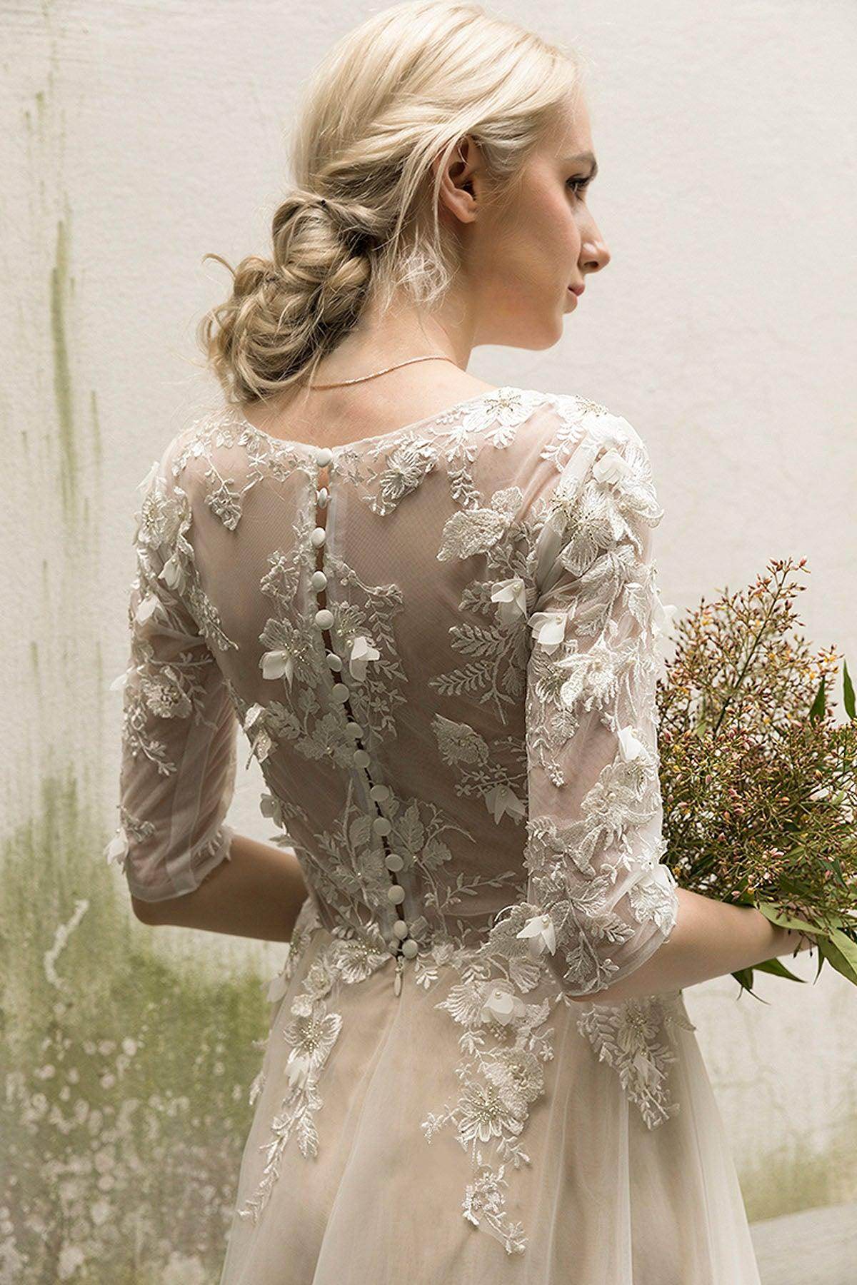 - Hemline/Train: Sweep-Brush Train