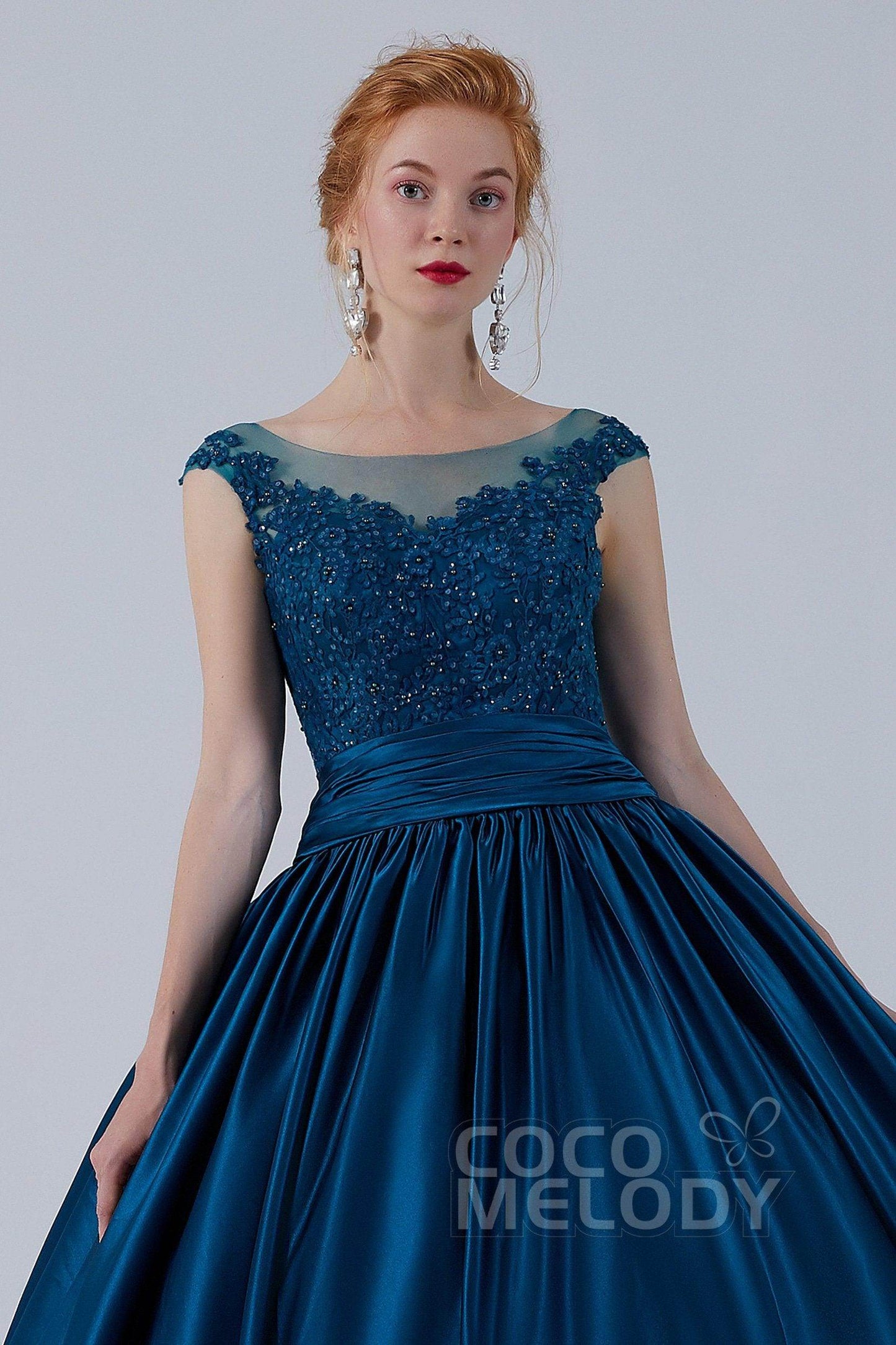 Introducing the IMOGEN wedding dress in striking ink blue! This exquisite ball gown features an illusion neckline adorned with intricate appliques and beading. Perfect for church, hotel, and hall weddings, it offers timeless elegance and sophistication for your special day!