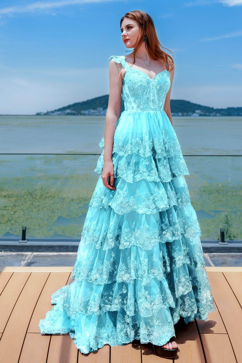 Unveil your elegance with our breathtaking ball gown prom dress! This sleeveless beauty features a natural waist, straps, and a lace-up corset back, adorned with delicate tulle and appliques. Perfect for proms, weddings, and galas, this versatile gown ensures you shine at any event.