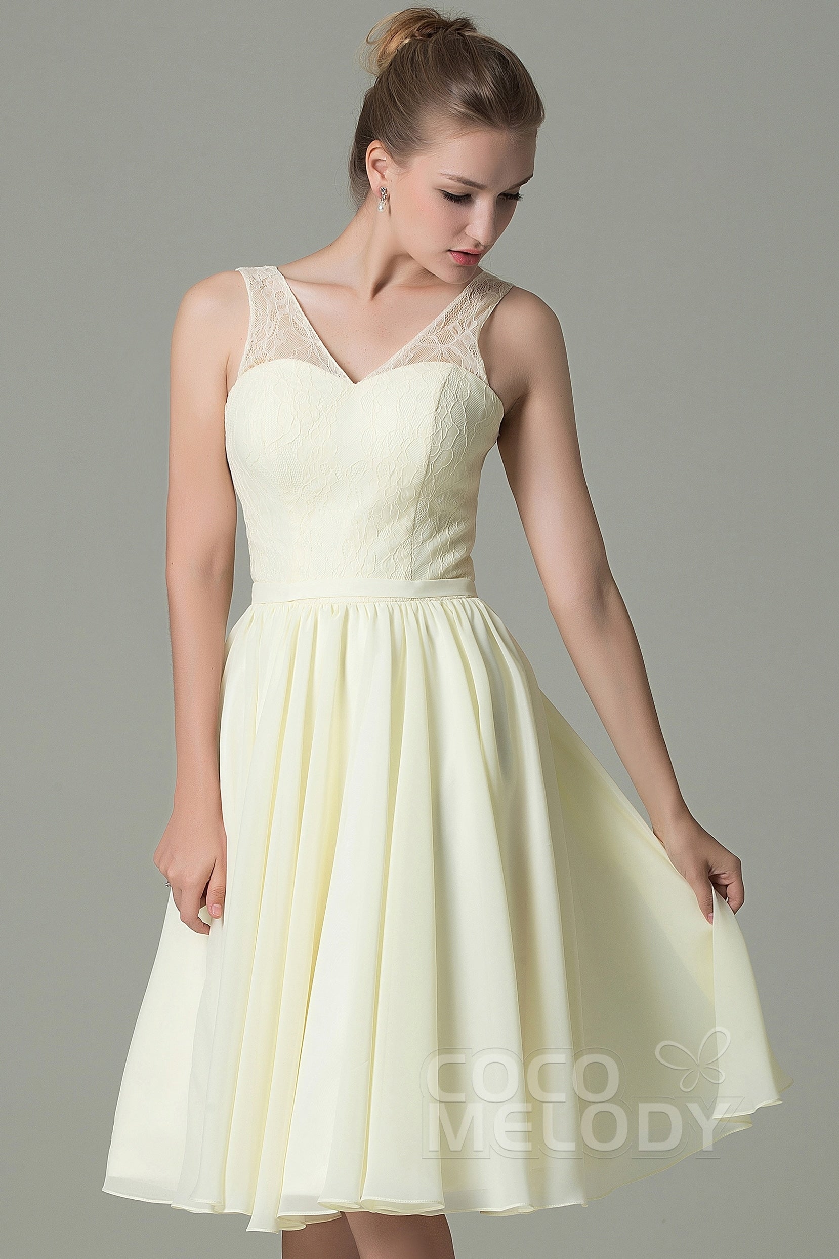 A-Line Knee Length Lace Short Bridesmaid Dress COZK16001