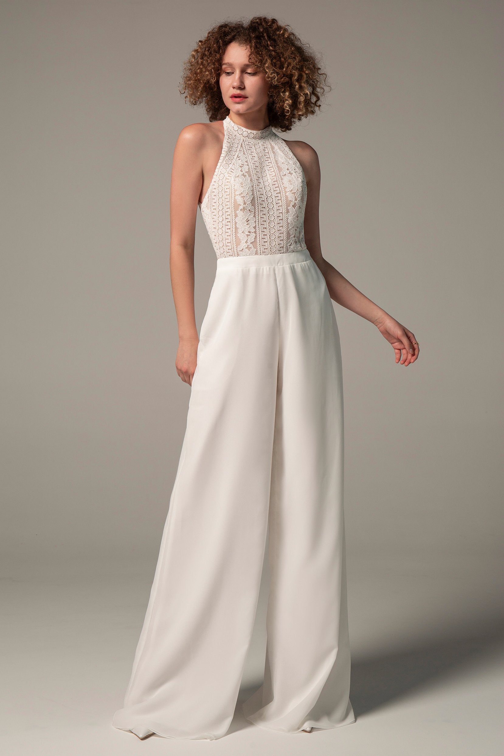 Floor Length Chiffon Lace Wedding Jumpsuit CW2354