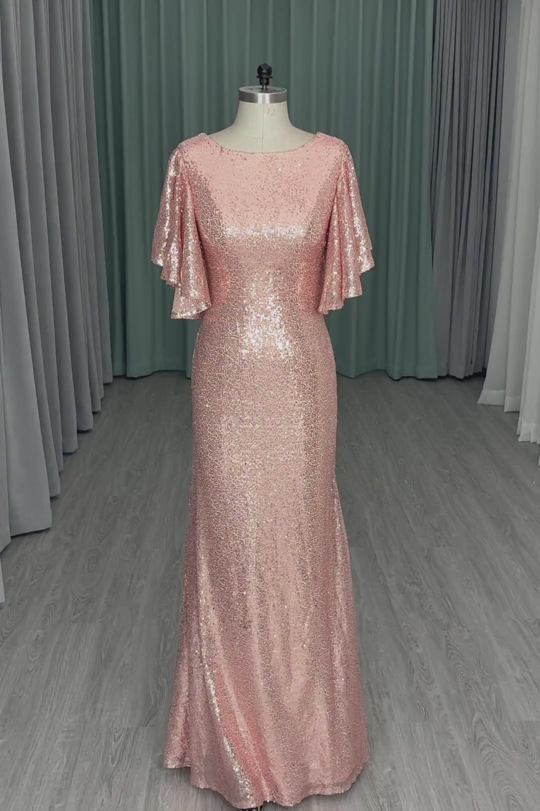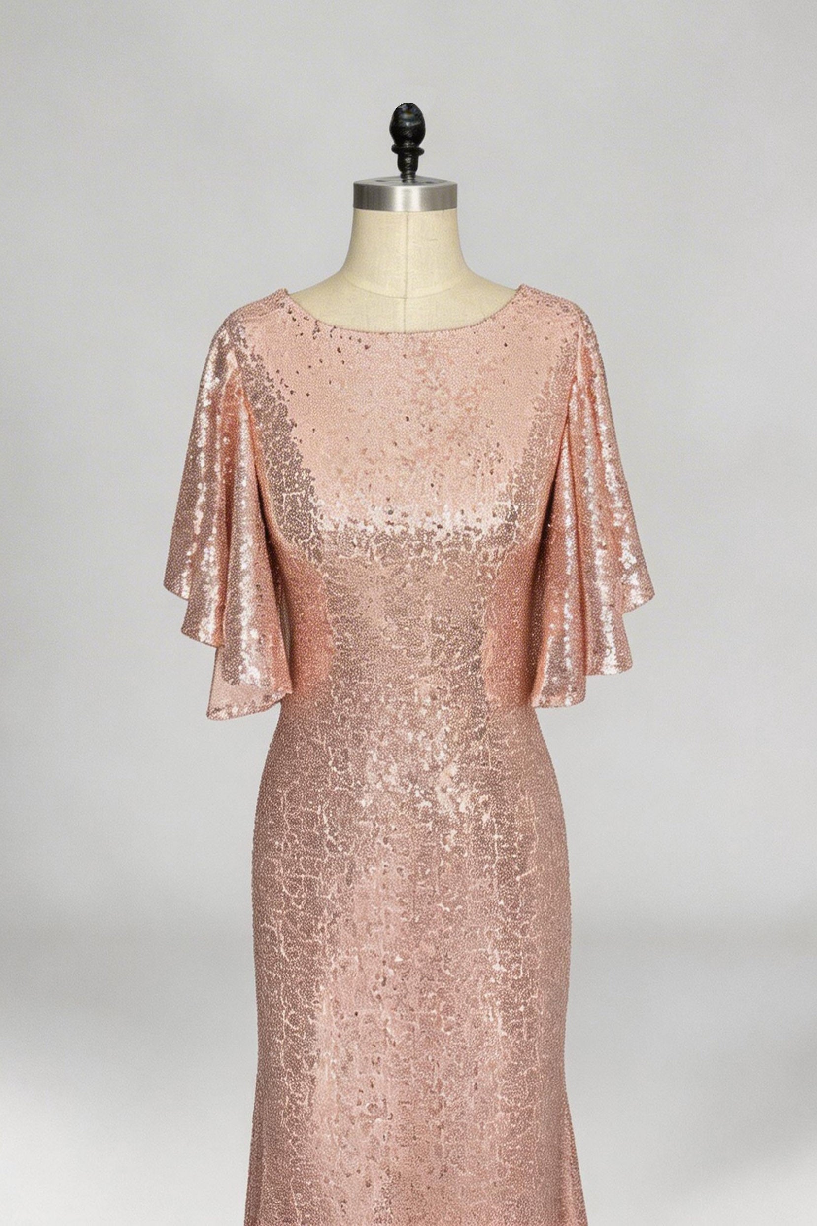 Unveil timeless glamour in this sequined trumpet mermaid dress with delicate flutter sleeves, designed to flatter and shine with every movement. Perfect for the mother of the bride, it offers a refined blend of sparkle and elegance, making it ideal for weddings, formal receptions, and sophisticated soirees. A graceful choice for unforgettable special occasions with effortless charm.