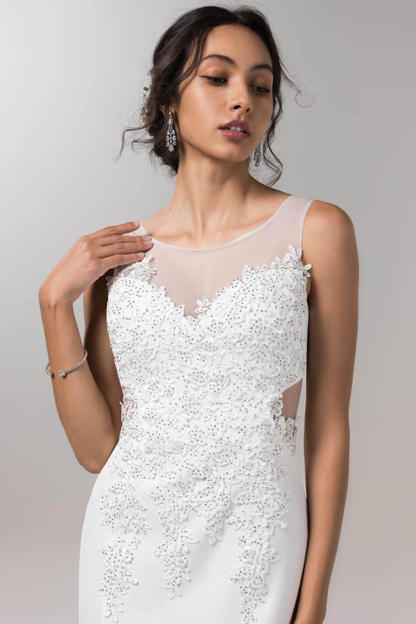 Mermaid Sweep-Brush Train Elastic Knitted Fabric Wedding Dress COCOMELODY CW2609 Skip to content