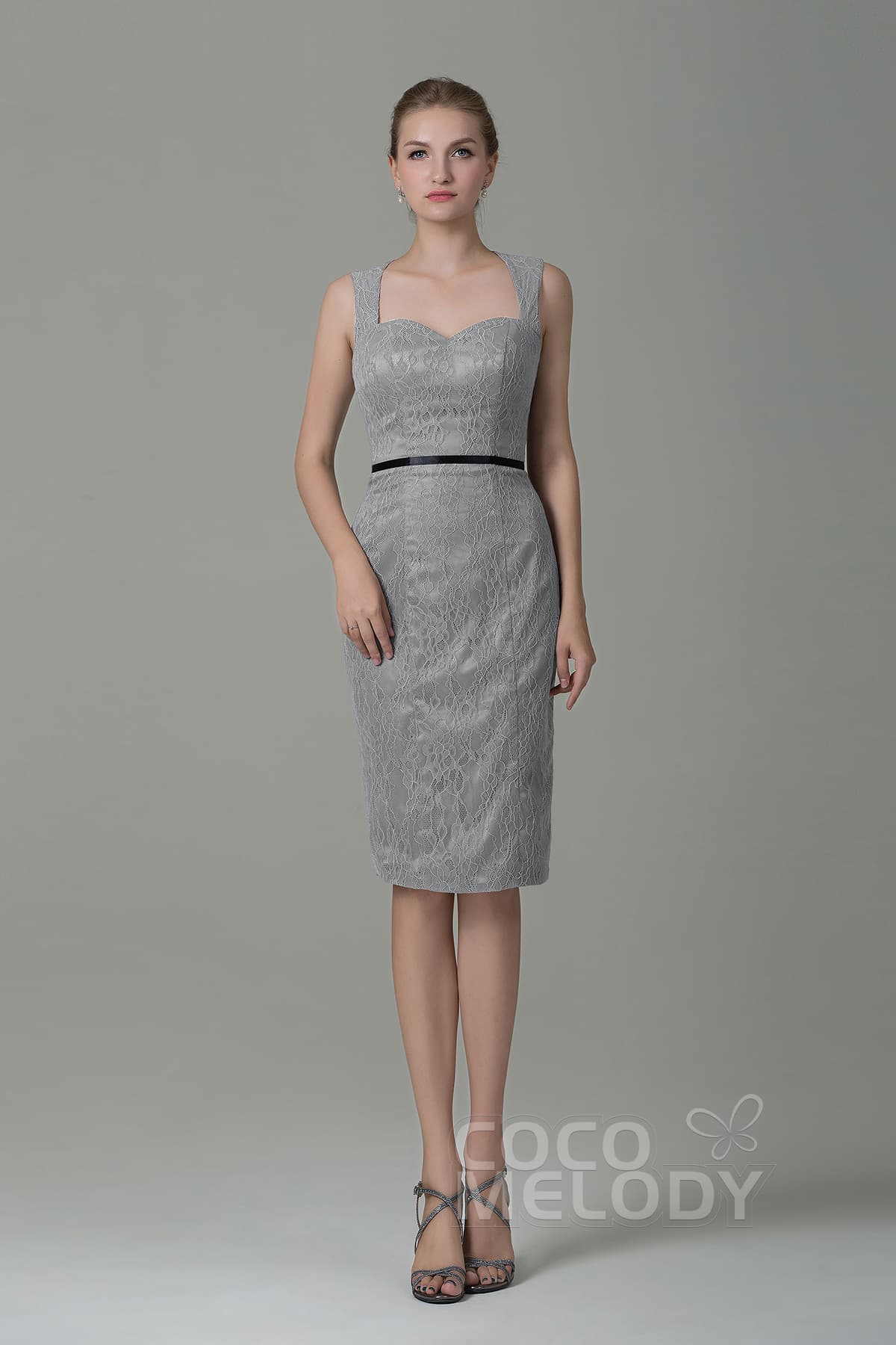 Sheath-Column Knee Length Lace Bridesmaid Dress COZK16011