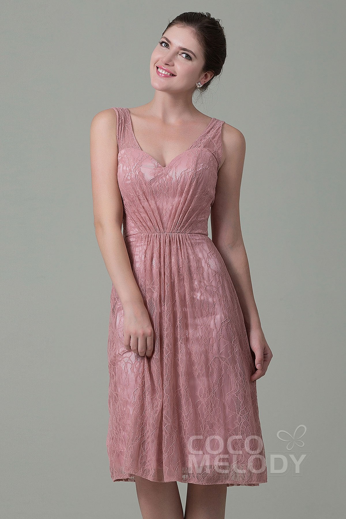 Sheath-Column Knee Length Lace Bridesmaid Dress COZK16010