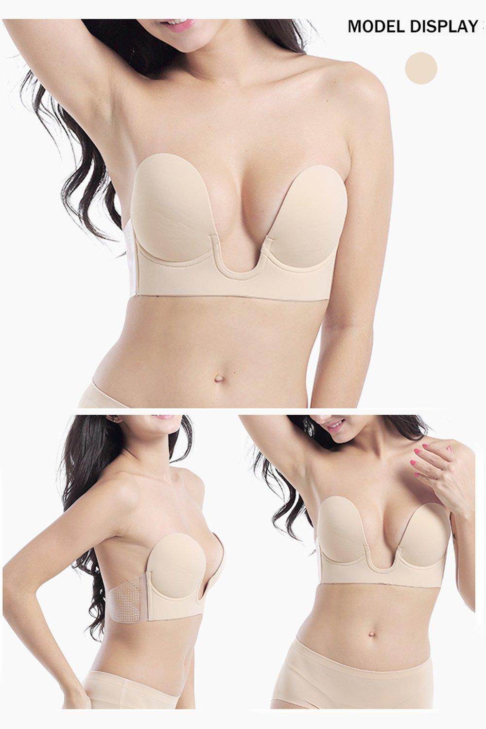 This smooth, strapless, nylon bra features invisible adhesive support with a push-up effect. Perfect for special occasions and backless outfits.