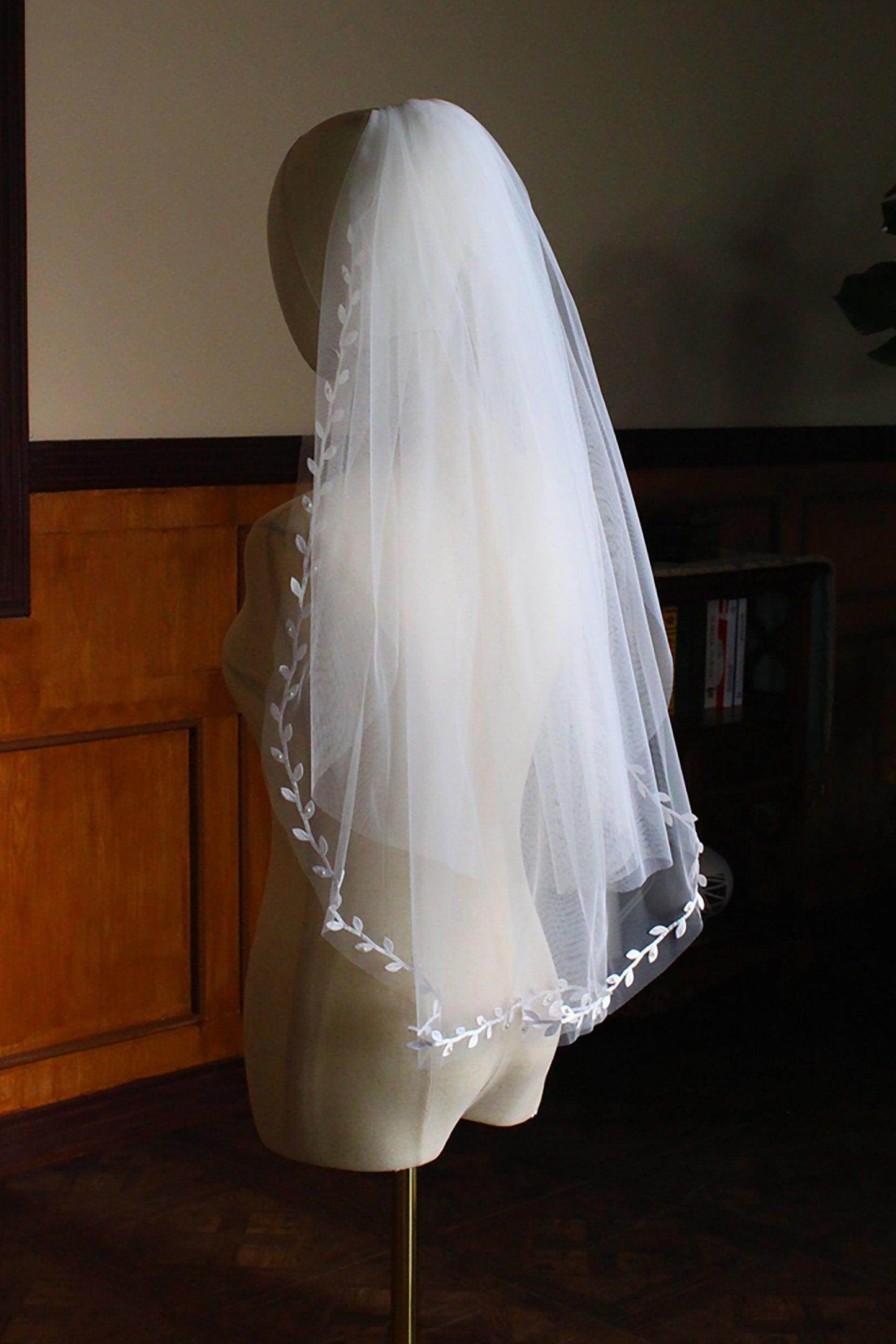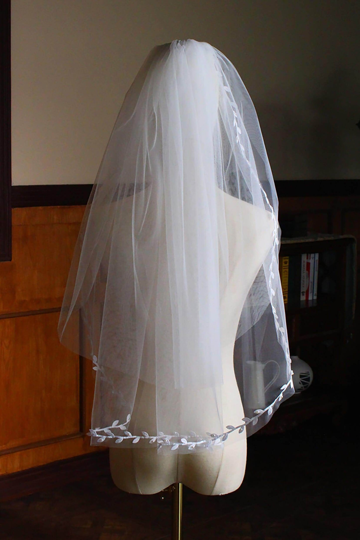 One-tier Leaves Edge Tulle Waist Veils with CV0300