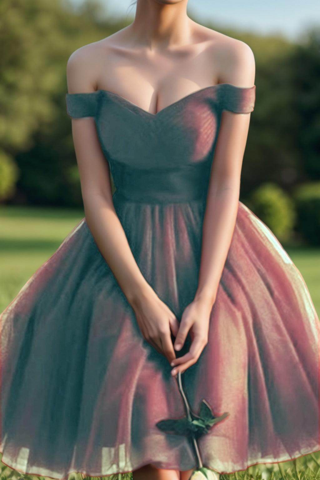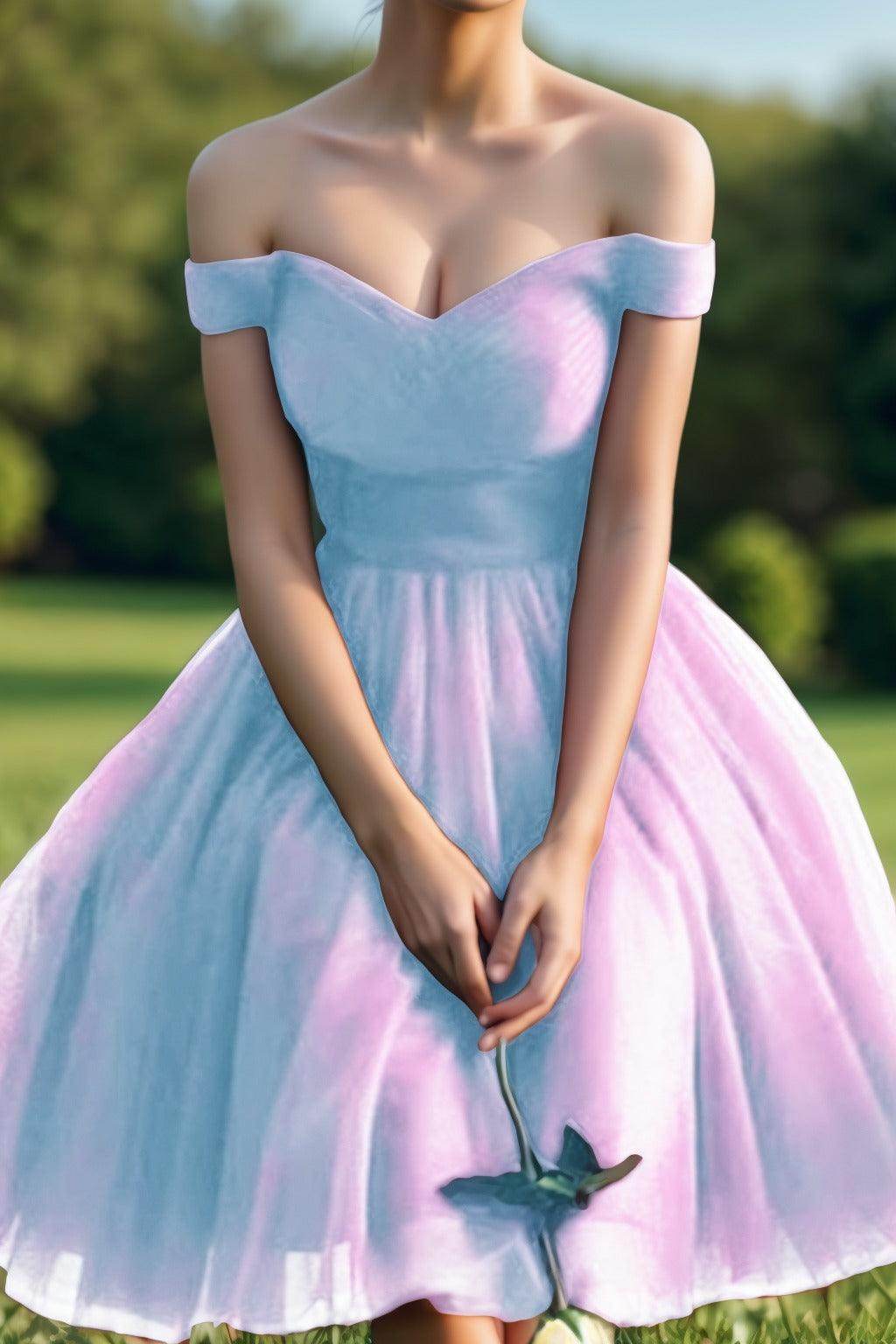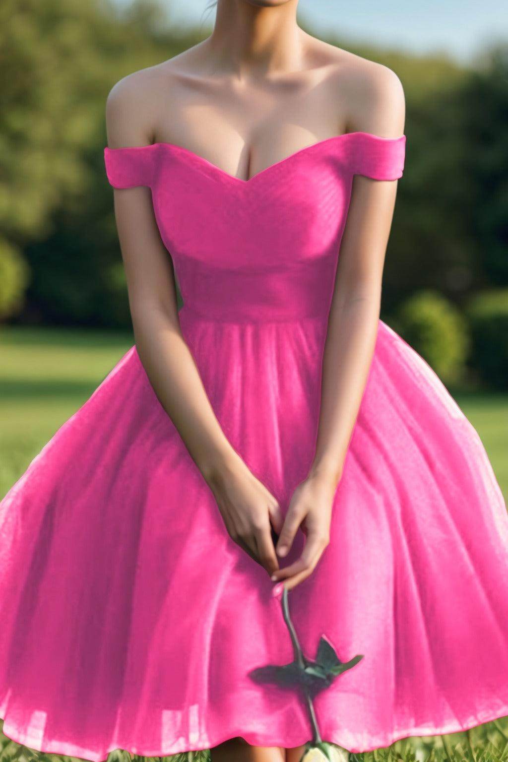 Embrace enchantment with our new off-the-shoulder homecoming dress. Crafted in dreamy tulle with intricate pleating, lace-up corset detail, and a flattering princess silhouette, it's perfect for homecoming, weddings, and more. Radiate elegance at every occasion in this timeless masterpiece.