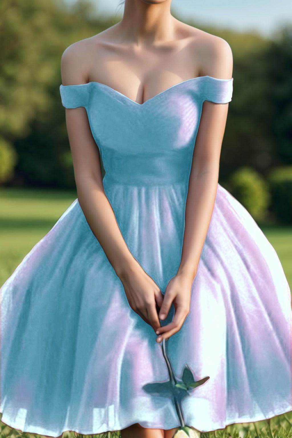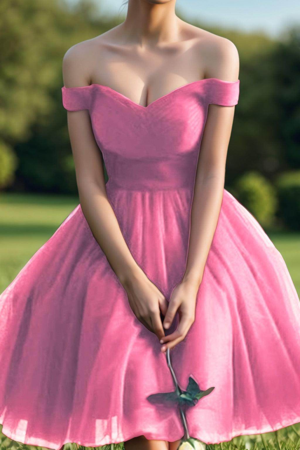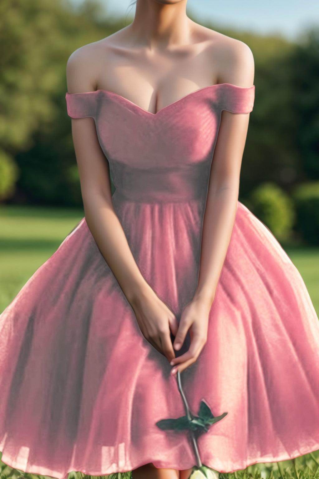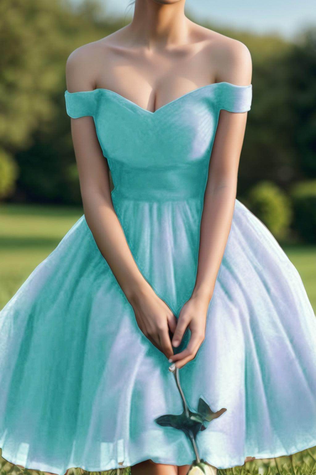 Embrace enchantment with our new off-the-shoulder homecoming dress. Crafted in dreamy tulle with intricate pleating, lace-up corset detail, and a flattering princess silhouette, it's perfect for homecoming, weddings, and more. Radiate elegance at every occasion in this timeless masterpiece.